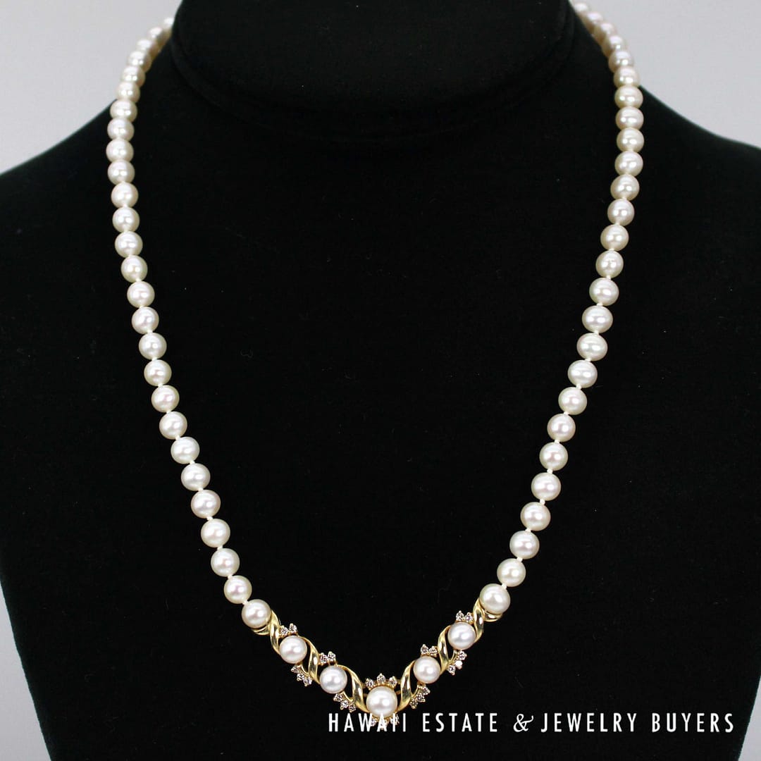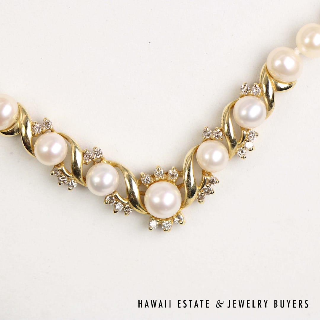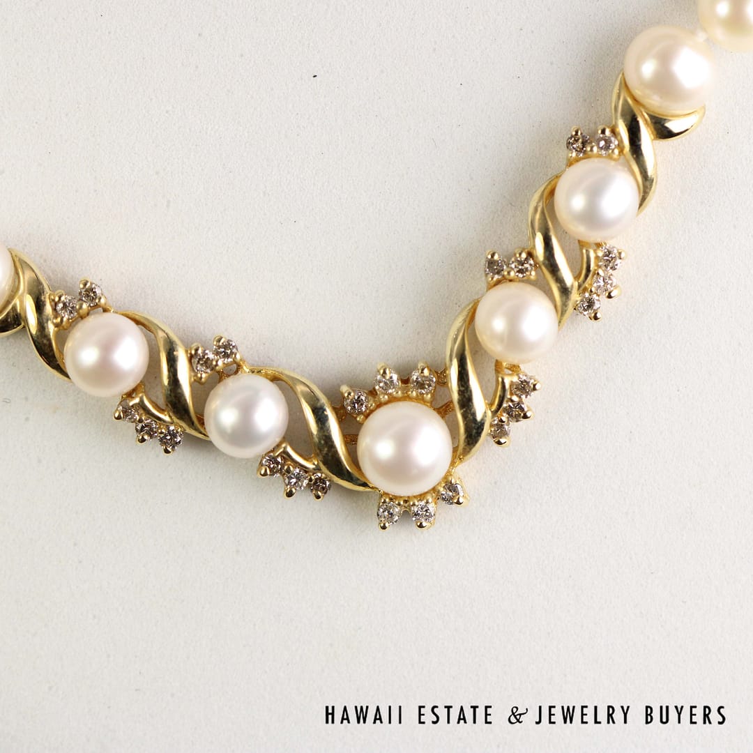 21.5g 14KYG PEARL AND 0.25ctw DIAMOND 18" NECKLACE (041524-13).