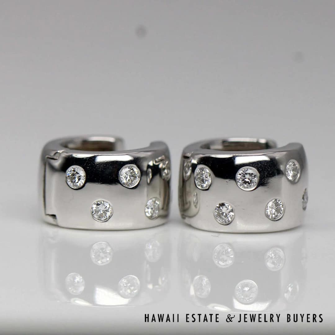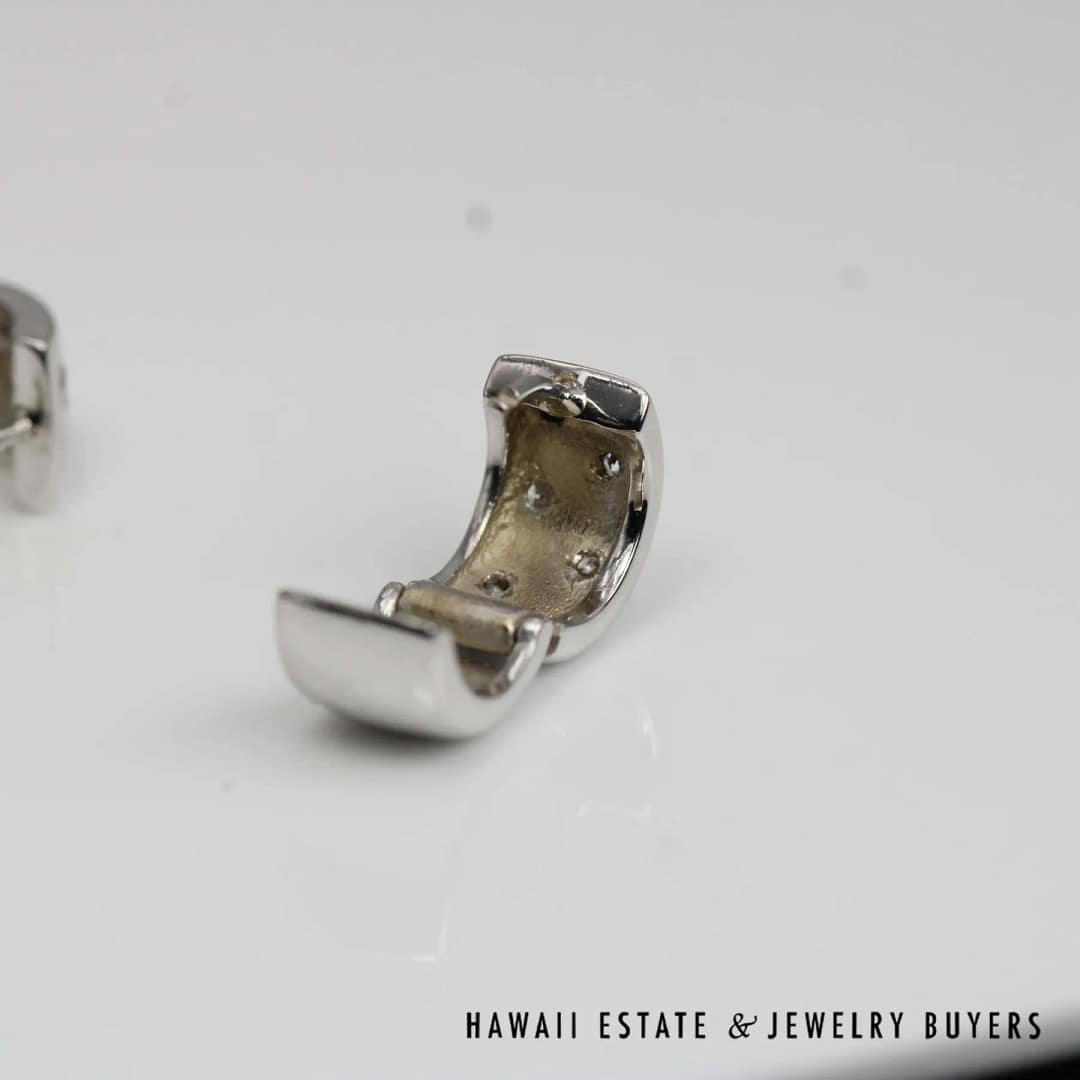 DescriptionStunning 0.35CTW Diamond earrings crafted with quality 14K White Gold, these earrings are perfect for any occasion.7.3g 14KWG 0.35ctw SI/GH DIAMOND HUGGIE EARRINGS (CC0191-12)$850.001 in stock0.35CTW Diamond 14K White Gold Huggie Hoop Earrings quantityAdd to cartBuy withMake OfferSKU: CC0191-12Category: Pre-owned Diamond JewelryRelated StylesWILLIAM LEVINE DESIGNER PLATINUM & ENAMEL DIAMOND FLORAL PENDANT & EARRING SET$9,500.004.02ct Princess Cut Diamond Ring GIA H, VS1$75,000.00DIAMOND PAVE ROSE GOLD WHITE GOLD 18K FLOATING FLOWER RING SIZE 4.75$1,800.00VICTORIAN OLD MINE DIAMOND 5.48CTW PLATINUM GOLD BROOCH & DIAMOND NECKLACE SET$13,300.00