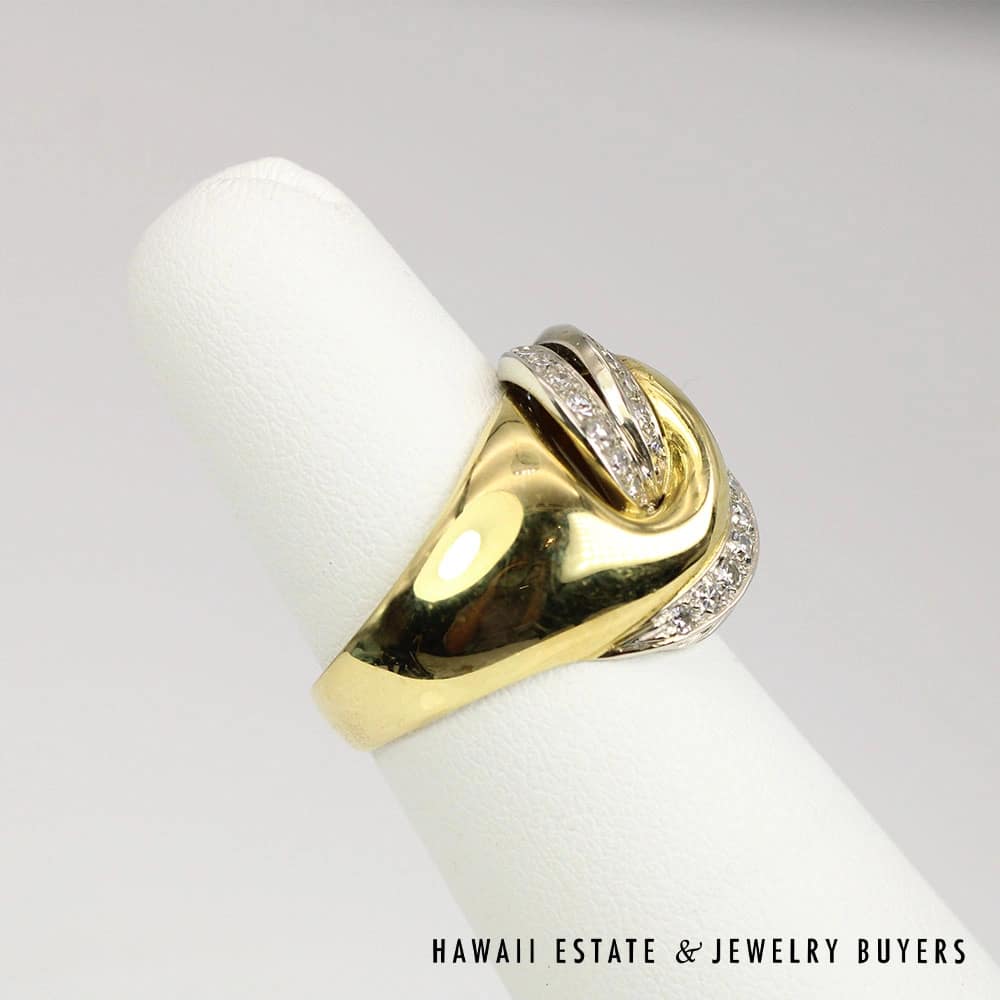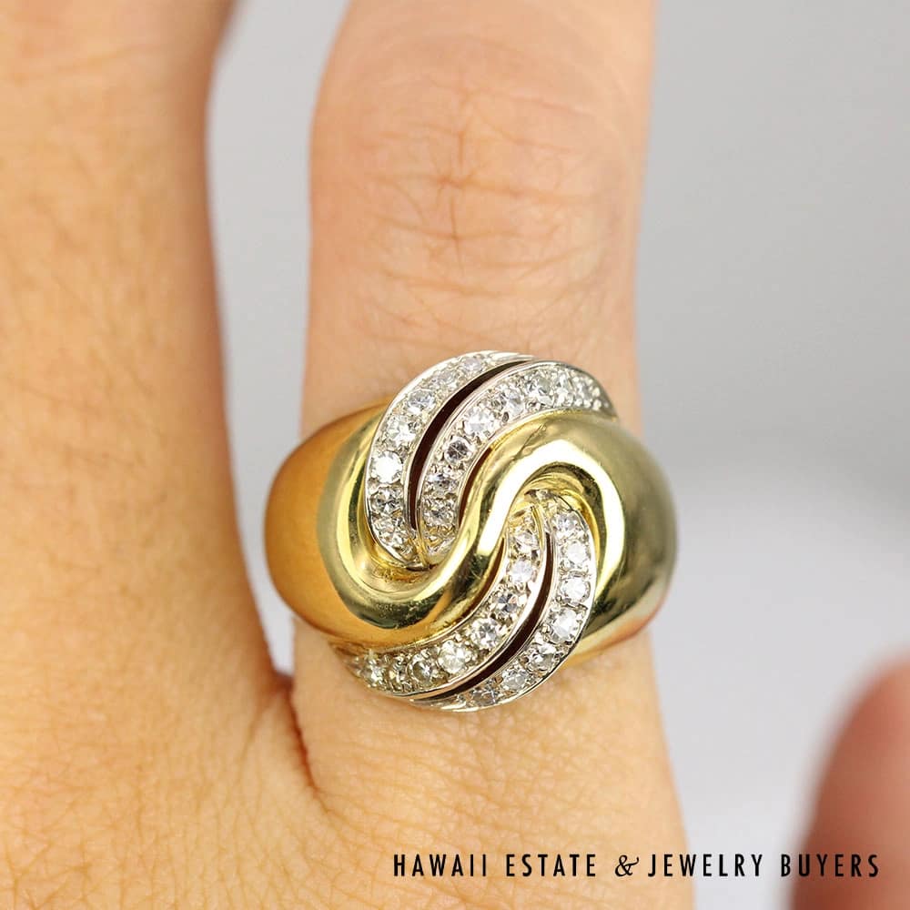DescriptionAll diamonds are single cut SI/GH. Beautiful Size 6.5 Ring featuring a delicate swirl in 18K Yellow and White Gold.051024-06 9.7g 18K2T 0.35ctw Diamond Swirl Ring Size 6.5$1,150.001 in stock0.35ctw Diamond Swirl 9.7g 18K Two-Tone Ring Size 6.5 quantityAdd to cartMake OfferSKU: 051024-06Category: Pre-owned Diamond JewelryRelated Styles1.50CTW PRINCESS CUT 14K YELLOW GOLD MEN’S RING SIZE 8.25$2,500.004.02ct Princess Cut Diamond Ring GIA H, VS1$75,000.00Ruby & Diamond Drop 18k White Gold Earrings$2,300.00DIAMOND 4.2CTW 14K YELLOW GOLD TENNIS BRACELET 7″$4,200.00