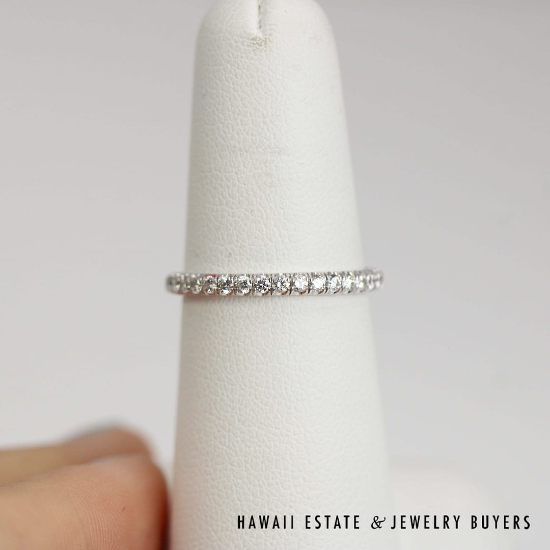 DescriptionBeautiful wedding band featuring 0.45ctw of diamonds in 18K white gold, size 6.75.1.9g 18KWG 0.45ctw VS/G DIAMOND ANNIVERSARY BAND SIZE 6.75 (2699-02)$1,600.001 in stock0.45ctw VS/G Diamond Anniversary Band 18k White Gold Size 6.75, 1.9g quantityAdd to cartBuy withMake OfferSKU: 2699-02Category: Pre-owned Diamond JewelryRelated StylesDESIGNER EMERALD & 8.04CTW DIAMOND 18K YELLOW GOLD BRACELET$7,999.00ANTIQUE 2.60CT ROSE CUT PEAR DIAMOND – GIA FANCY LIGHT BROWN-YELLOW RING (SZ 5)$36,000.00Diamond White Gold Yellow Gold 14k Ribbon Pendant$1,350.00Antique Victorian 1800s Old Mine Cut Diamond Bar Brooch$8,200.00