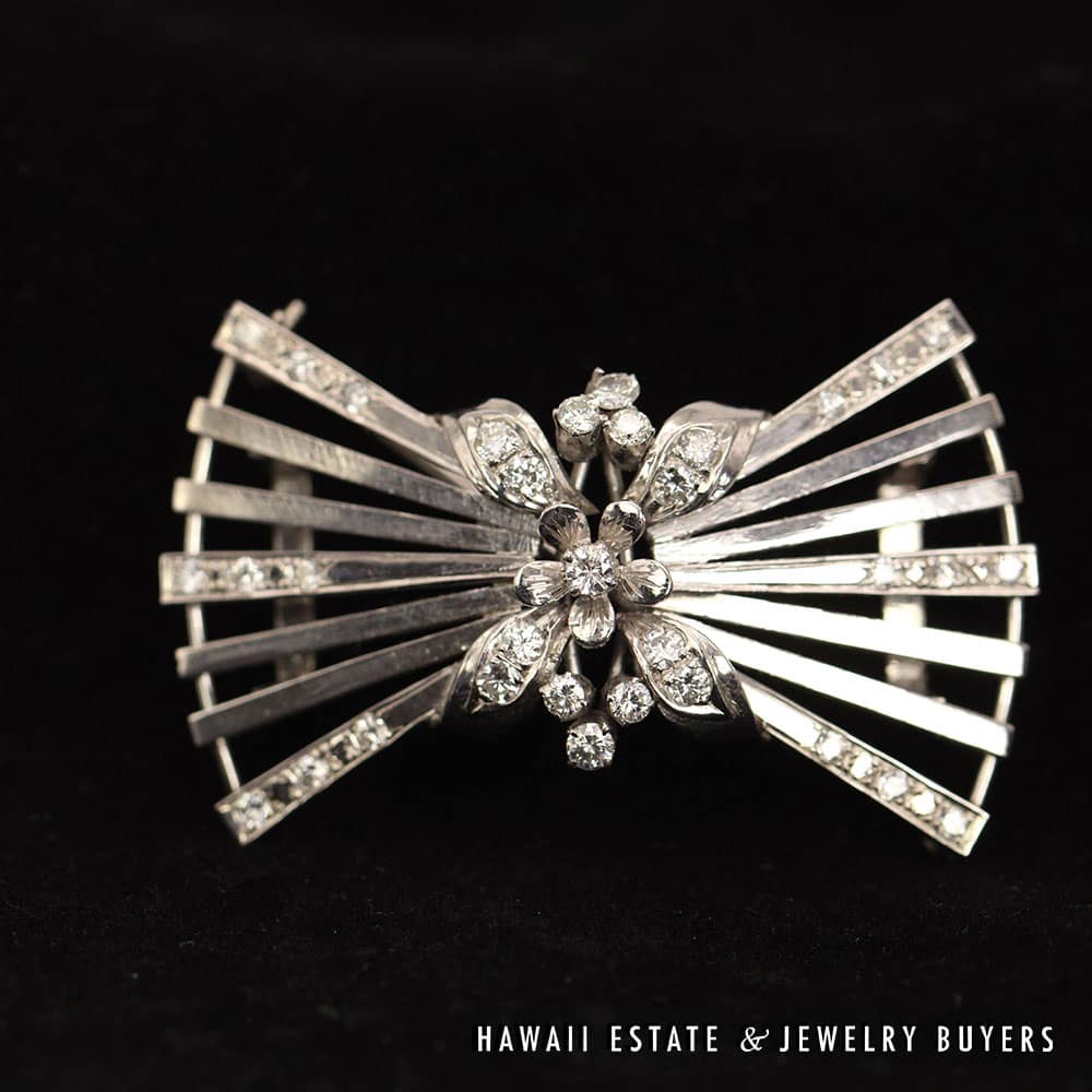 Description14.3g PLATINUM OBIDOME / BROOCH 0.75ctw DIAMOND (2827-04) $1,100.001 in stock0.75ctw Diamond Platinum Obidome / Brooch quantityAdd to cartMake OfferSKU: 2827-04Category: Pre-owned Diamond JewelryRelated StylesVICTORIAN OLD MINE DIAMOND 5.48CTW PLATINUM GOLD BROOCH & DIAMOND NECKLACE SET$13,300.00DIAMOND 4.2CTW 14K YELLOW GOLD TENNIS BRACELET 7″$4,200.00Antique 1920’s European Cut Diamond 8.62ctw Platinum Bracelet$20,000.00Diamond White Gold Yellow Gold 14k Ribbon Pendant$1,350.00
