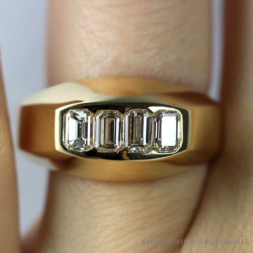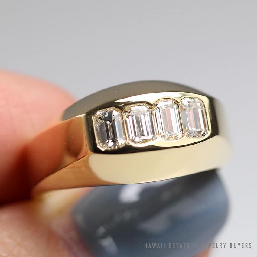 0.90CTW 4 STONE EMERALD CUT DIAMONDS 18K YELLOW GOLD MEN’S RING SIZE 8.5