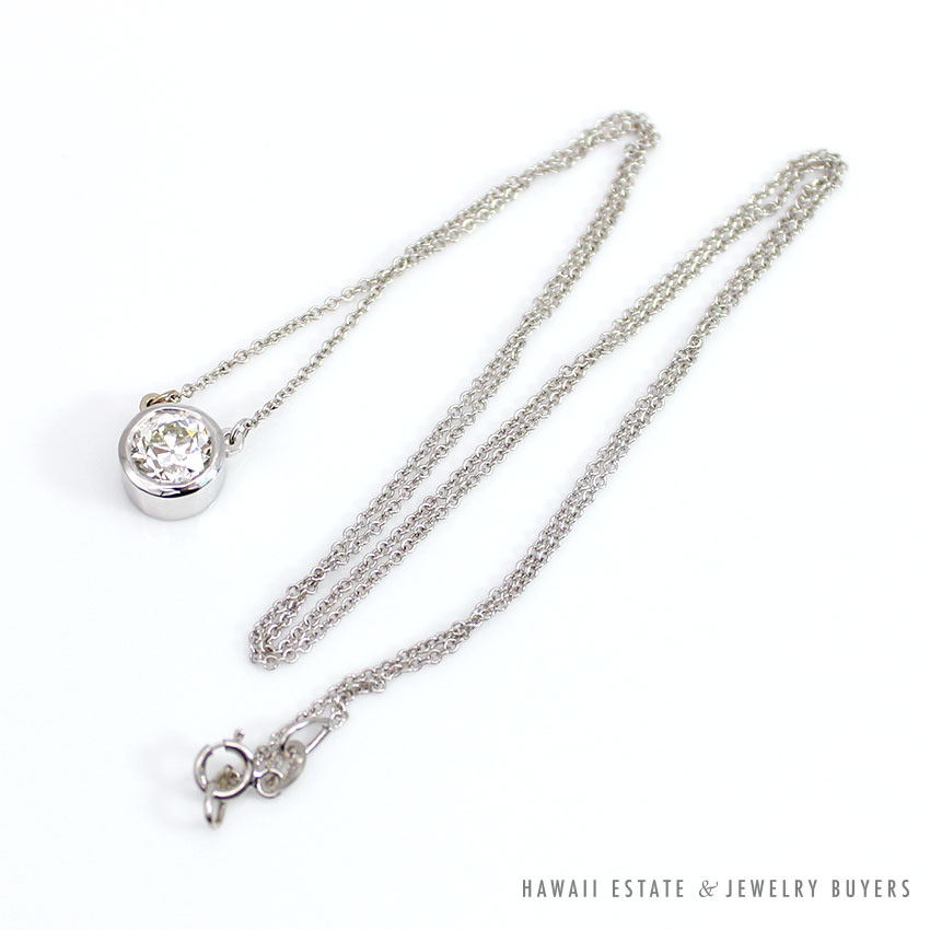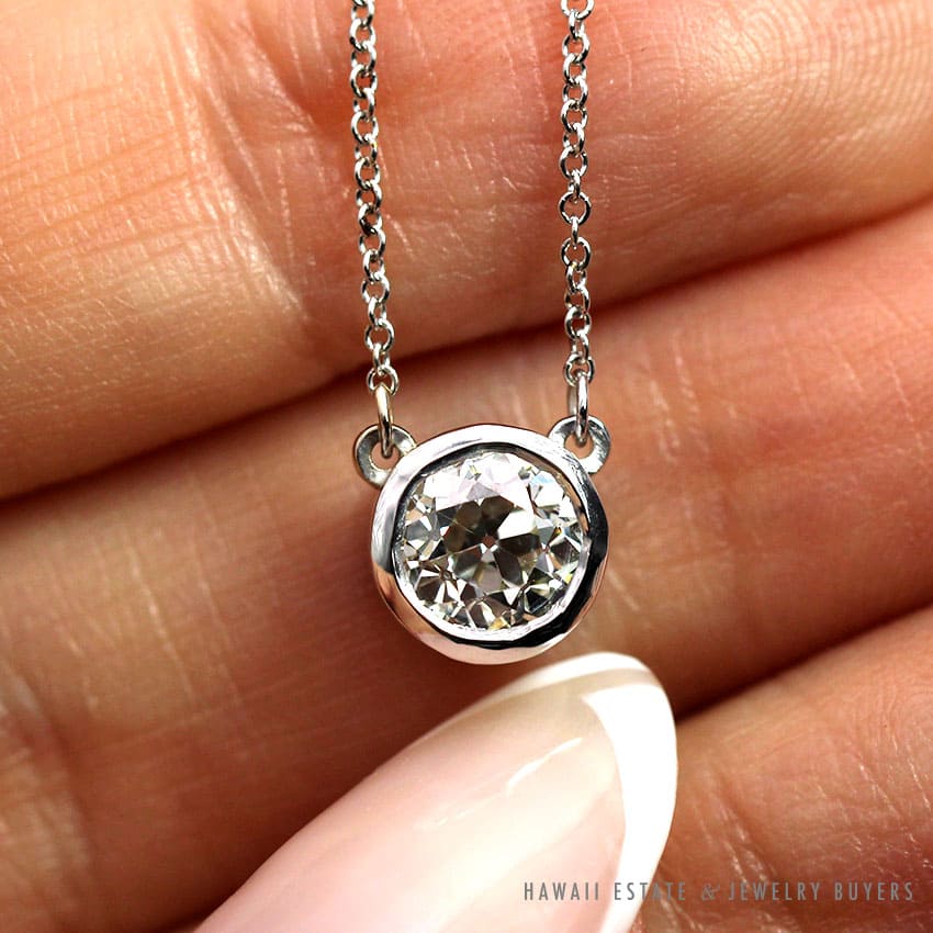 Description1.01CT OLD EURO CUT ROUND DIAMOND I COLOR & VS1 CLARITYNECKLACE CHAIN STAMPED “14K ITALY”PENDANT & NECKLACE MEASURES APPROX 10 INCHES CLASPED ** CONDITION: NEW WITHOUT TAGS **$4,900.001 in stock1.01CT I VS1 OLD EURO CUT DIAMOND BEZEL SET 14K WHITE GOLD NECKLACE 20" quantityAdd to cartBuy withMake OfferSKU: 2495-01Category: Diamond JewelryRelated Styles12.6g 14KWG 10ct ICE JADE 1.80ctw DIAMONDS RING/PENDANT SIZE 5.5$9,500.001.9g 14KWG 0.40ctw DIAMOND FITTED BAND SIZE 4.5$950.009.9g PLATINUM 2.17ct CEYLON SAPPHIRE 0.48ctw DIAMOND RING SIZE 5.75$6,000.00GIA 24.5g 18KYG/PLATINUM SAPPHIRE AND DIAMOND RING SIZE 7$11,000.00