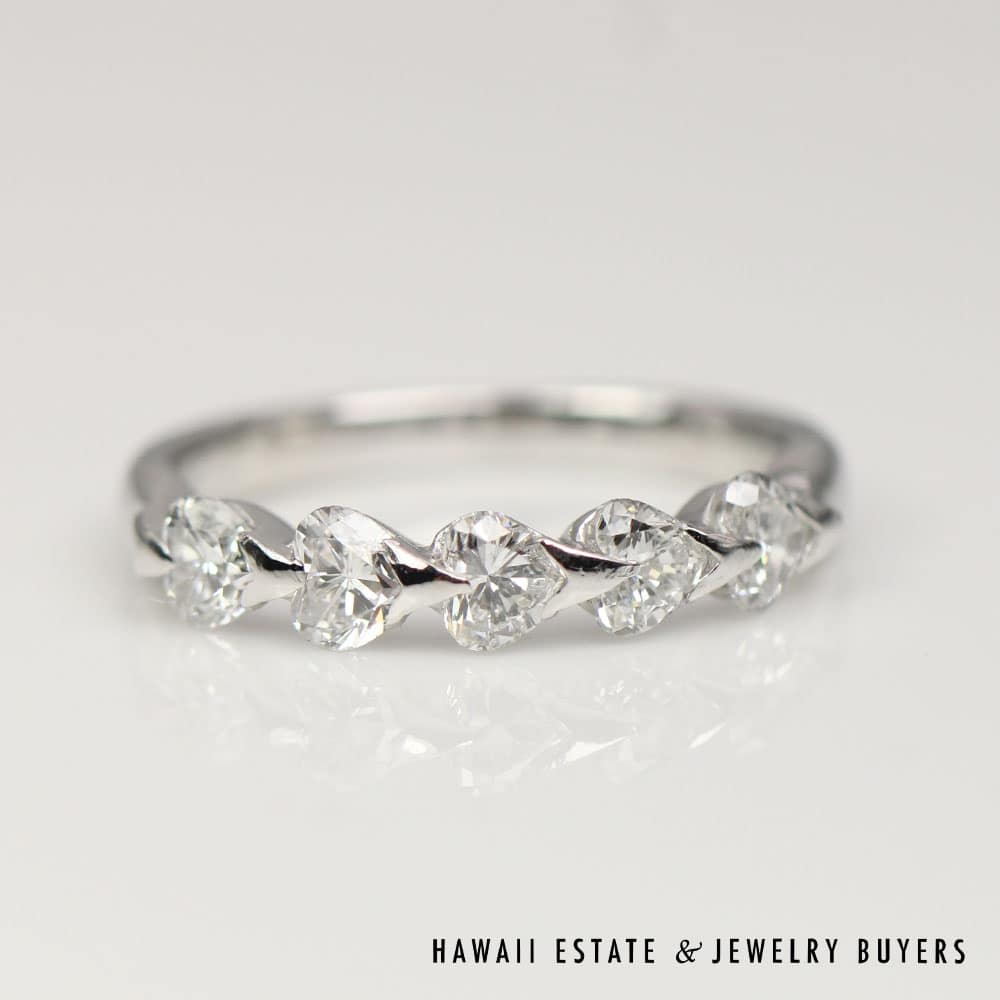 4.6g PLAT 1.04ctw HEART SHAPED DIAMOND BAND SIZE 5.25
