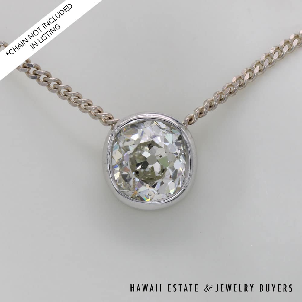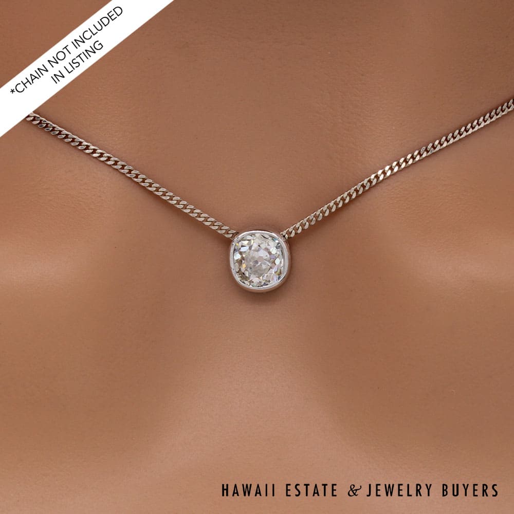 1.3g 14KWG 1.60ct OLD MINE CUT DIAMOND BEZEL SET PENDANT