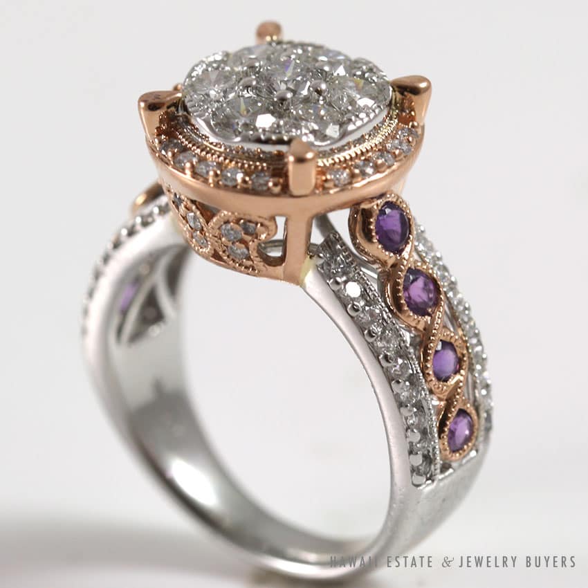 DescriptionSTAMPED: 14K ZEI 12 *Approximately 1.8CTW H – VS and .35ctw Amethyst stones $2,200.001 in stock1.80CTW DIAMOND AMETHYST MODERN ROMANTIC 2 TONE ROSE WHITE 14K GOLD RING SIZE 7 quantityAdd to cartMake OfferSKU: 1967-04Category: Pre-owned Diamond JewelryRelated StylesVICTORIAN OLD MINE DIAMOND 5.48CTW PLATINUM GOLD BROOCH & DIAMOND NECKLACE SET$13,300.00GIA CERTIFIED 4.4g 18K TWO TONE 4.71ct CUSHION CUT PINK-PURPLE SAPPHIRE 0.45ctw DIAMOND RING SIZE 5$25,000.00ANTIQUE 2.60CT ROSE CUT PEAR DIAMOND – GIA FANCY LIGHT BROWN-YELLOW RING (SZ 5)$36,000.00VINTAGE BURMESE JADEITE JADE & DIAMOND FLORAL 14K YELLOW GOLD BRACELET W/ GEMOLOGIST APPRAISAL$2,450.00