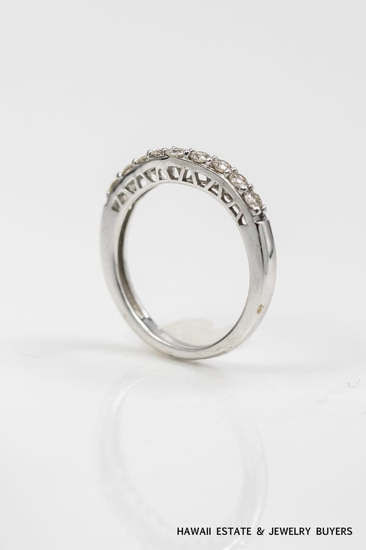 Description1.9g 14KWG 0.40ctw DIAMOND FITTED BAND SIZE 4.5Diamonds are VS/HI clarity/color. $950.001 in stock1.9g 14KWG 0.40ctw DIAMOND FITTED BAND SIZE 4.5 quantityAdd to cartBuy withMake OfferSKU: 110422-05Categories: Diamond Jewelry, Pre-owned Diamond JewelryTags: 14k, 14KWG, DIAMOND, diamond ring, ring, white goldRelated StylesDIAMOND PAVE ROSE GOLD WHITE GOLD 18K FLOATING FLOWER RING SIZE 4.75$1,800.00ANTIQUE 2.60CT ROSE CUT PEAR DIAMOND – GIA FANCY LIGHT BROWN-YELLOW RING (SZ 5)$36,000.00BEN BRIDGE 14K YELLOW GOLD WHITE GOLD TWO TONE TENNIS BRACELET & EARRINGS W/ BOX$3,000.00DIAMOND 14K YELLOW GOLD OPENING DOORS JEWISH MOSES PENDANT & 18K NECKLACE$3,500.00