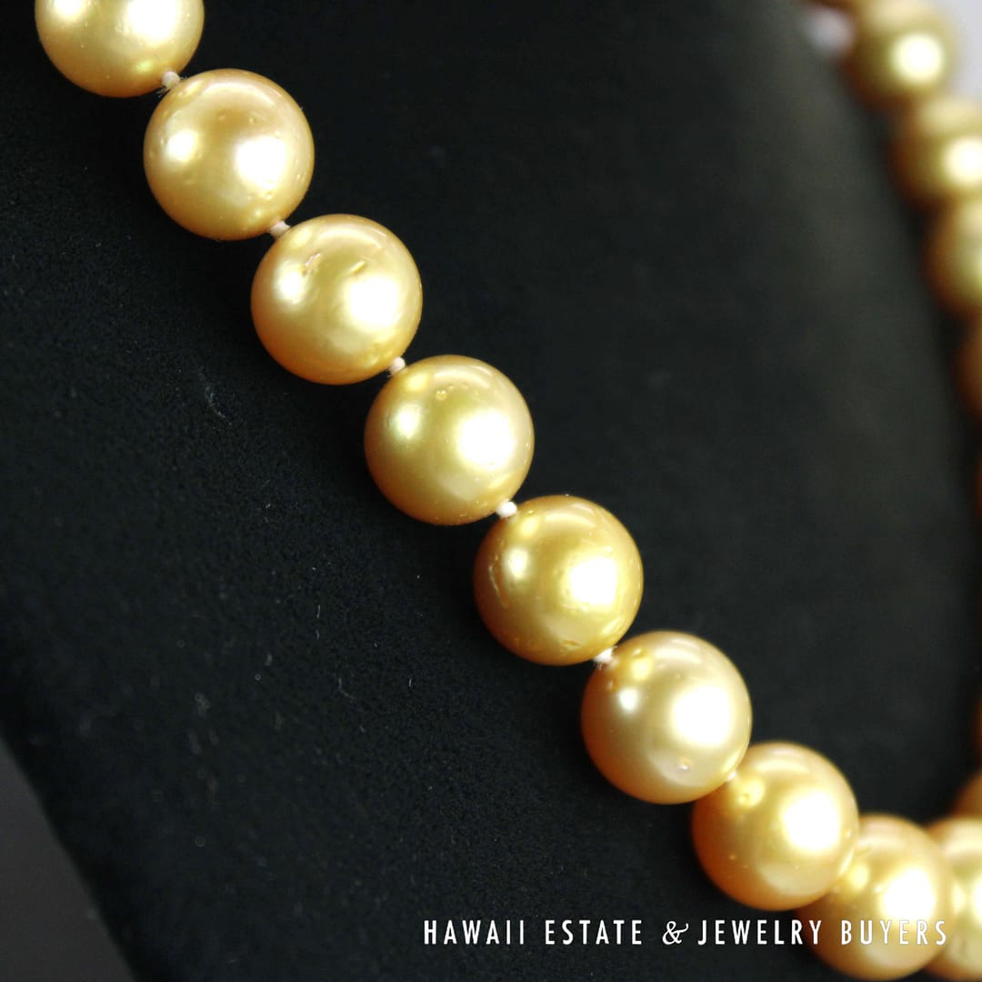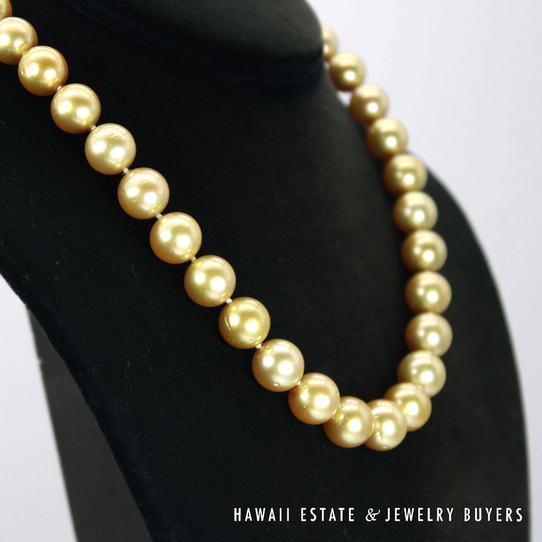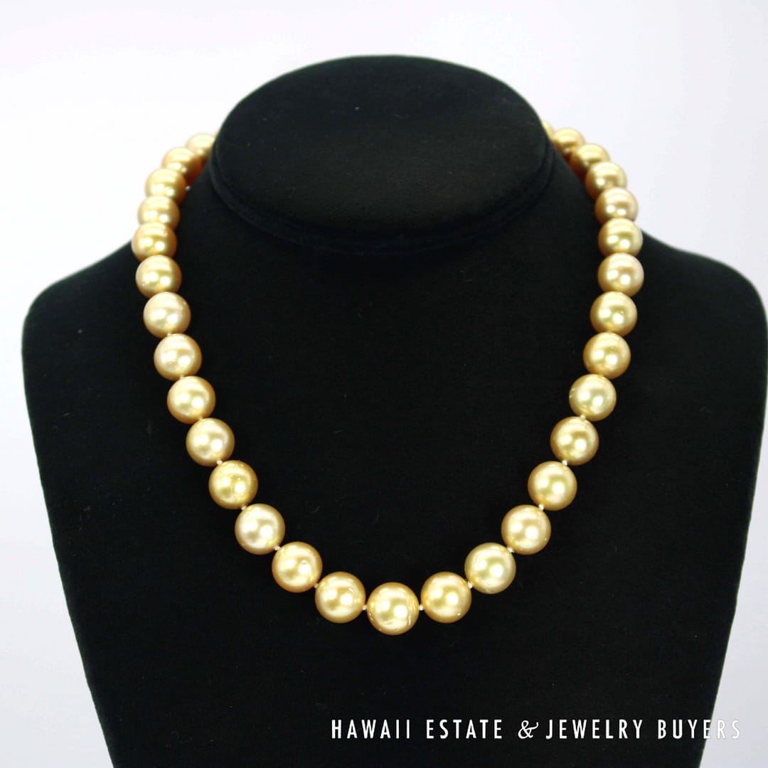 This 17-inch necklace features luxurious South Sea pearls graduating from 10-12mm. Secured with a 14k yellow gold clasp, it's a statement of classic elegance.