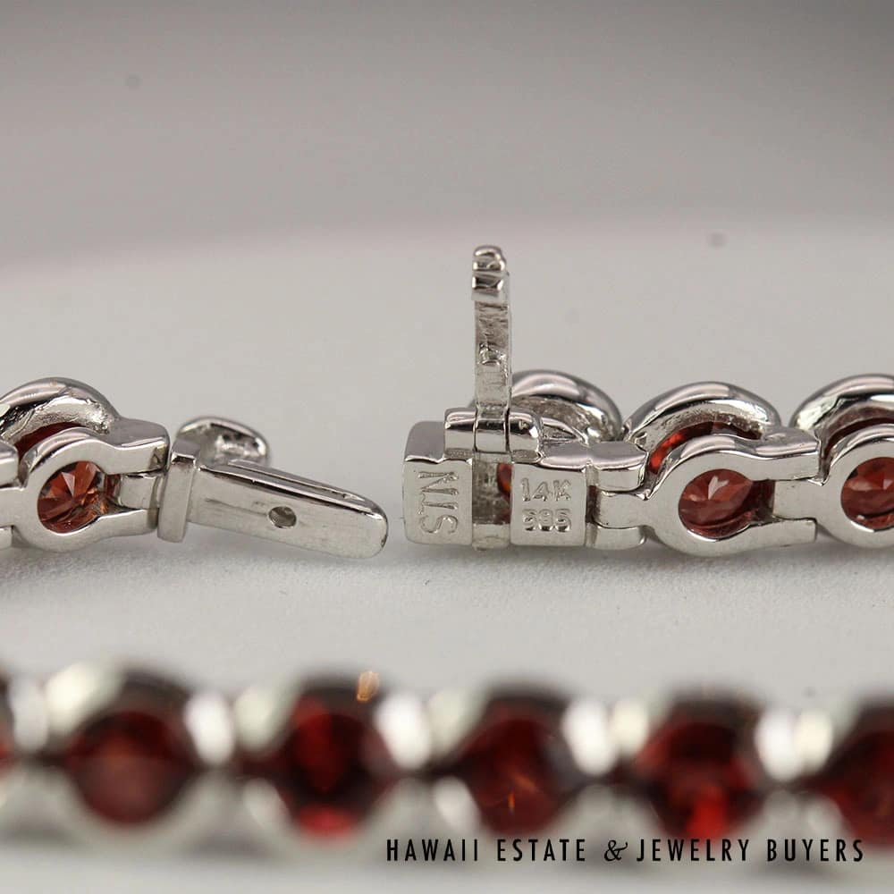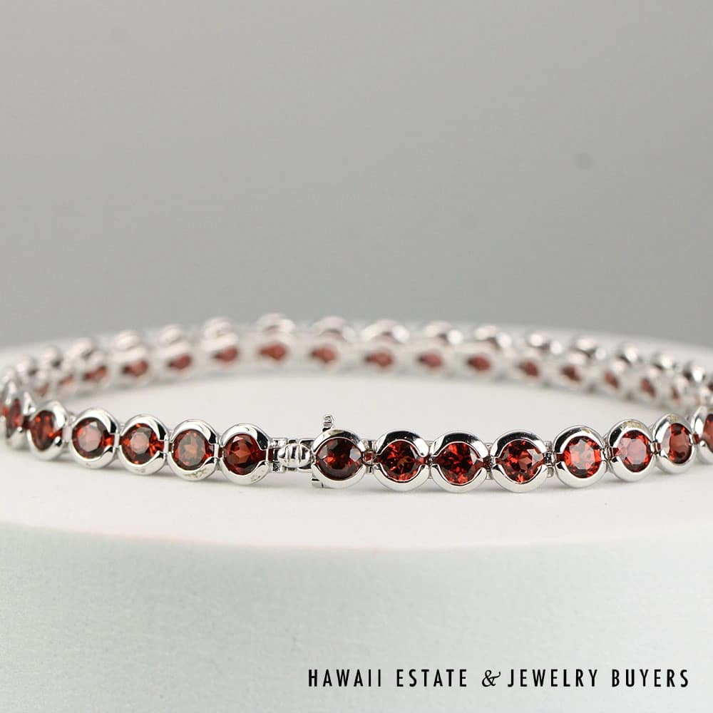 Home » Shop » 10.19ctw Garnet Bezel Set 14K White Gold Tennis Bracelet Size 7