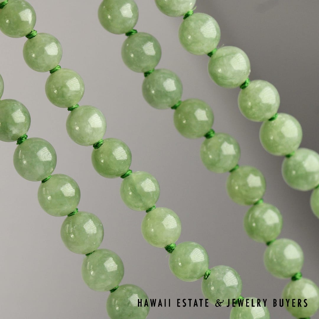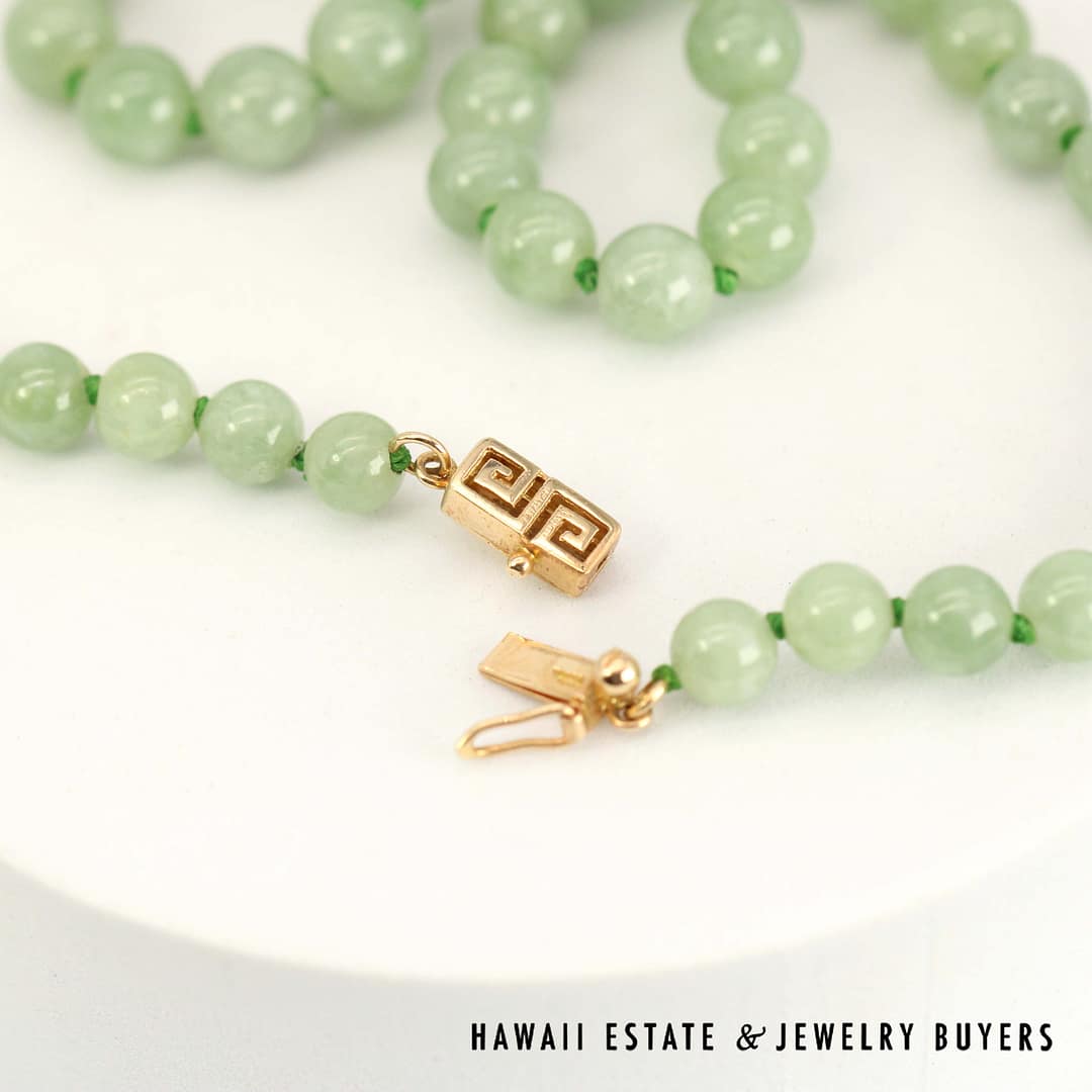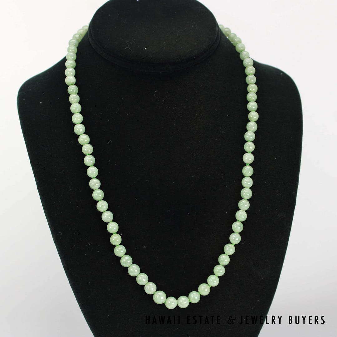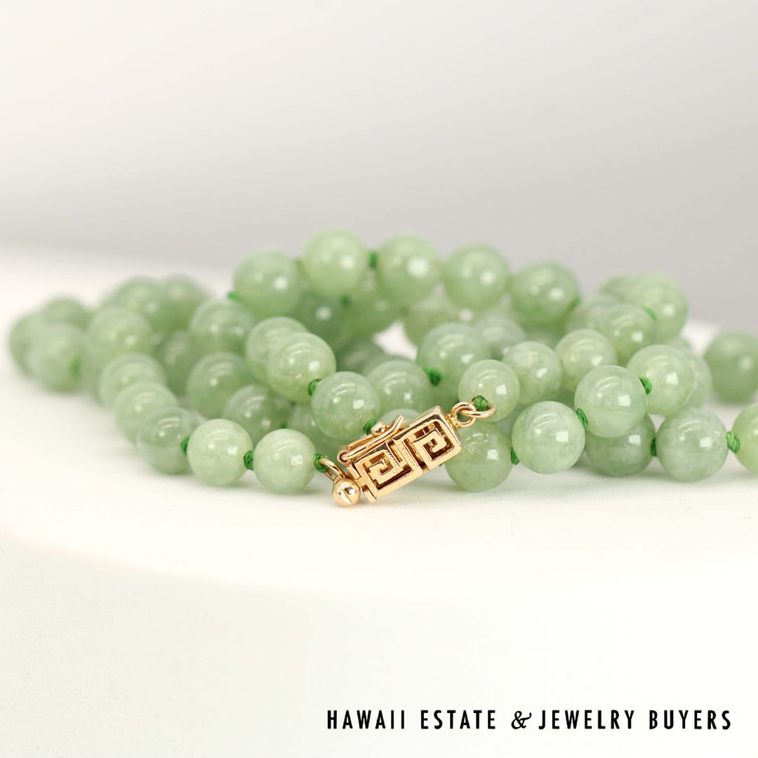 DescriptionCrafted with 14k yellow gold clasp, this beaded necklace measures 21 inches in length with beautiful green jade beads.14KYG KNOTTED 6-7.2mm GREEN JADE BEAD 21" NECKLACE (123123-07)$700.001 in stock14KYG Knotted 6-7.2mm Green Jade Bead 21" Necklace quantityAdd to cartBuy withMake OfferSKU: 123123-07Category: Pre-owned Jade JewelryRelated Styles4.8g 14KYG JADE WITH 0.08ctw I2/HI DIAMOND RING SIZE 6.5$799.00MING’S 11g 14KYG LIGHT GRAY JADE BAMBOO PEARL CLUSTER CLIP EARRINGS w/MING’S BOX$725.00GIA 14KYG 52.3g GRAY PURPLE JADE TYPE A HINGED BANGLE BRACELET SIZE 7$11,000.0021mm MABE PEARL 1ctw SI/GH DIAMOND 19.6g 14K YELLOW GOLD PENDANT BROOCH$2,000.00
