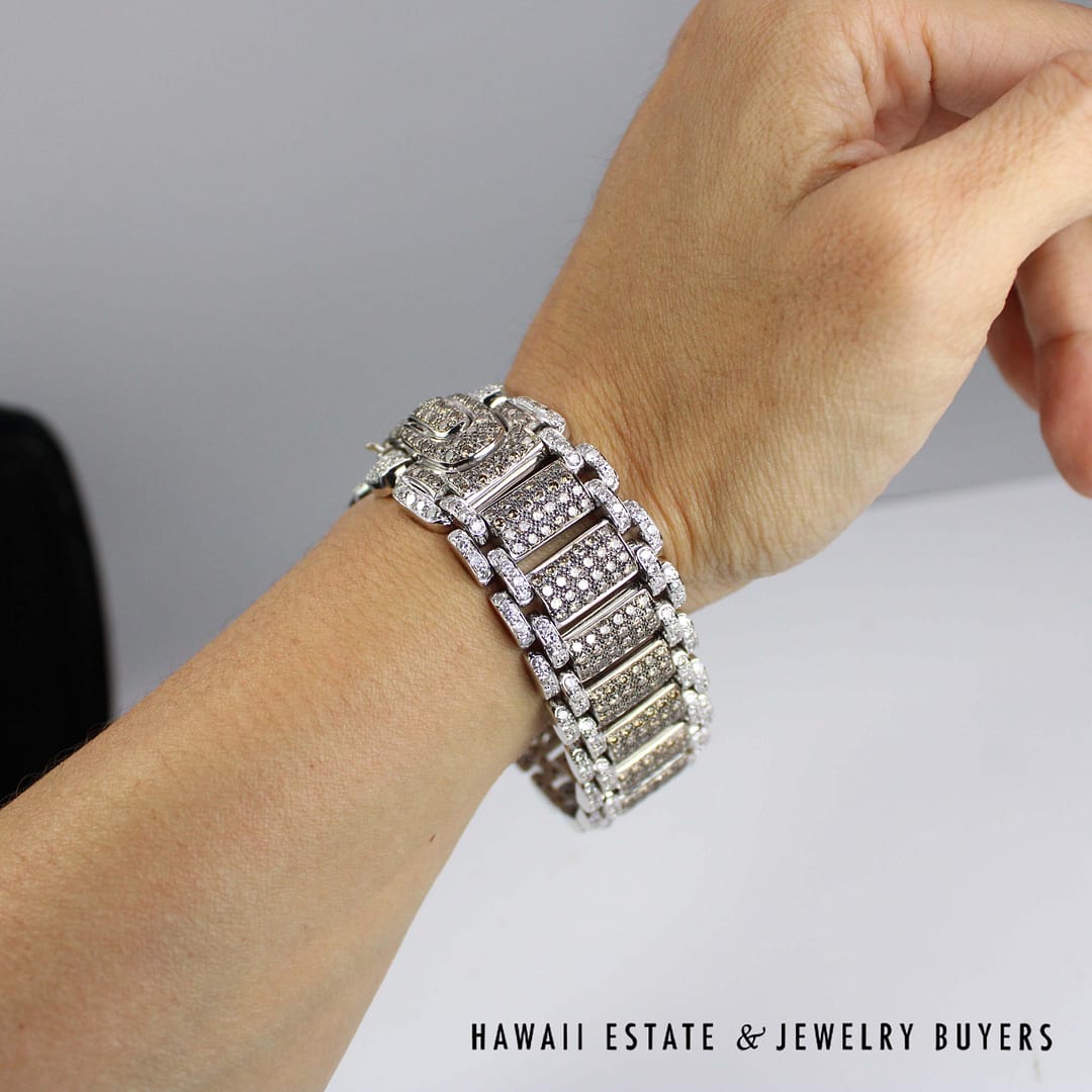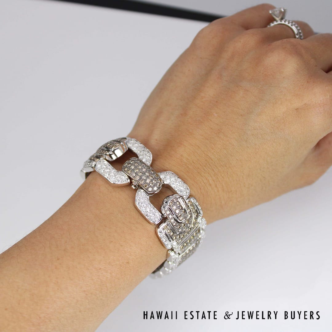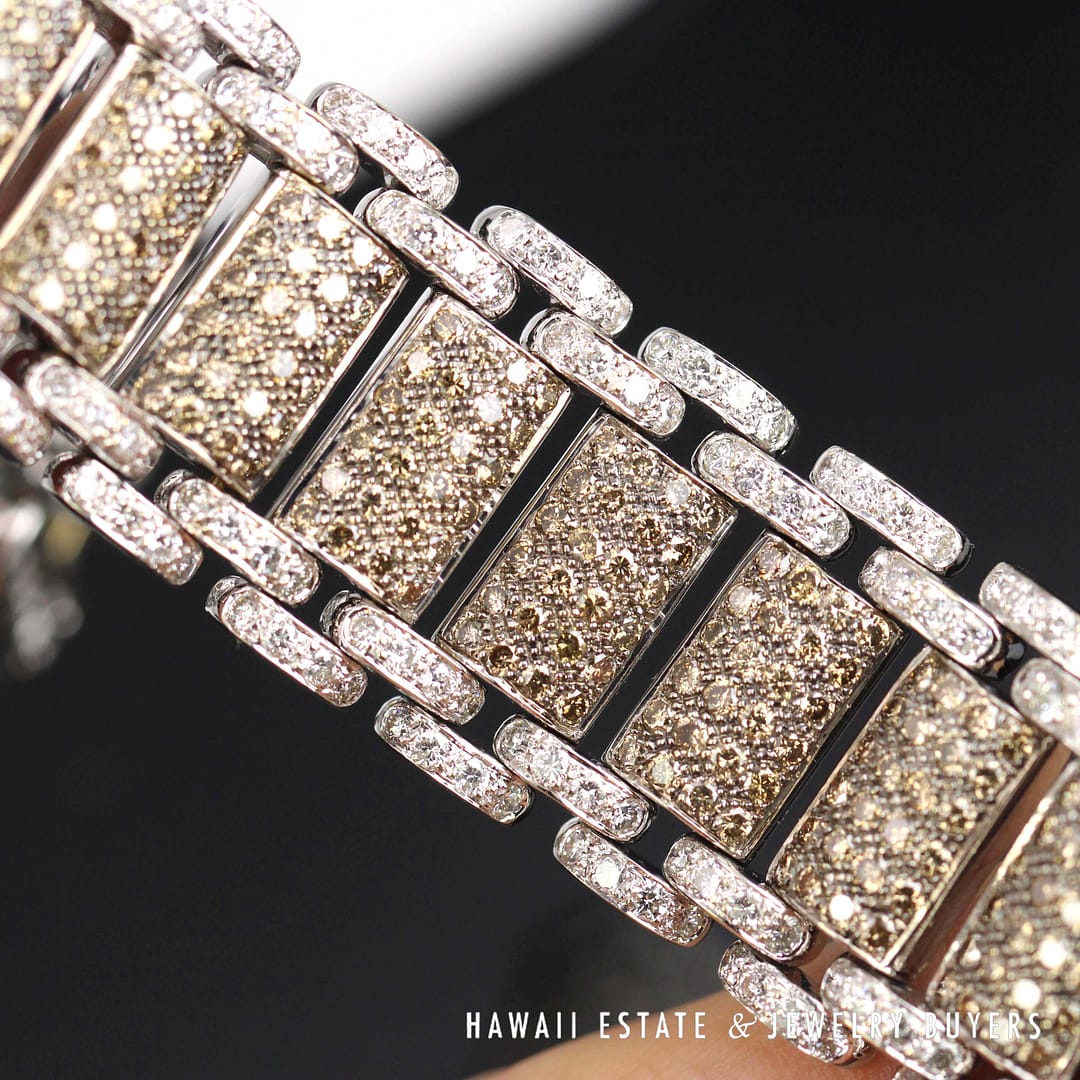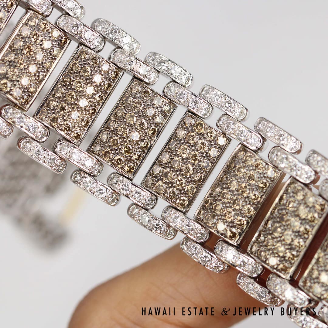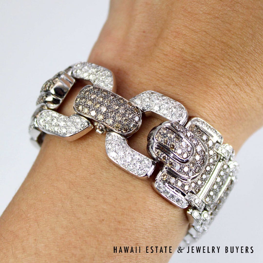 Chocolate Brown Diamond 18k White Gold pave Strap Bracelet (JG121418-02)