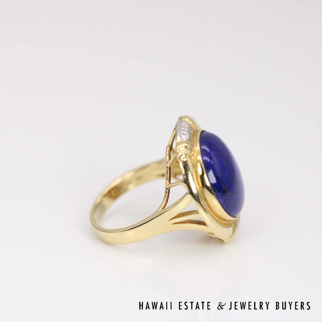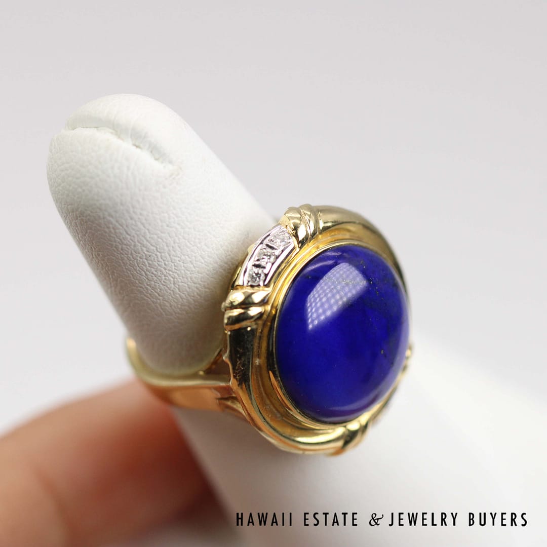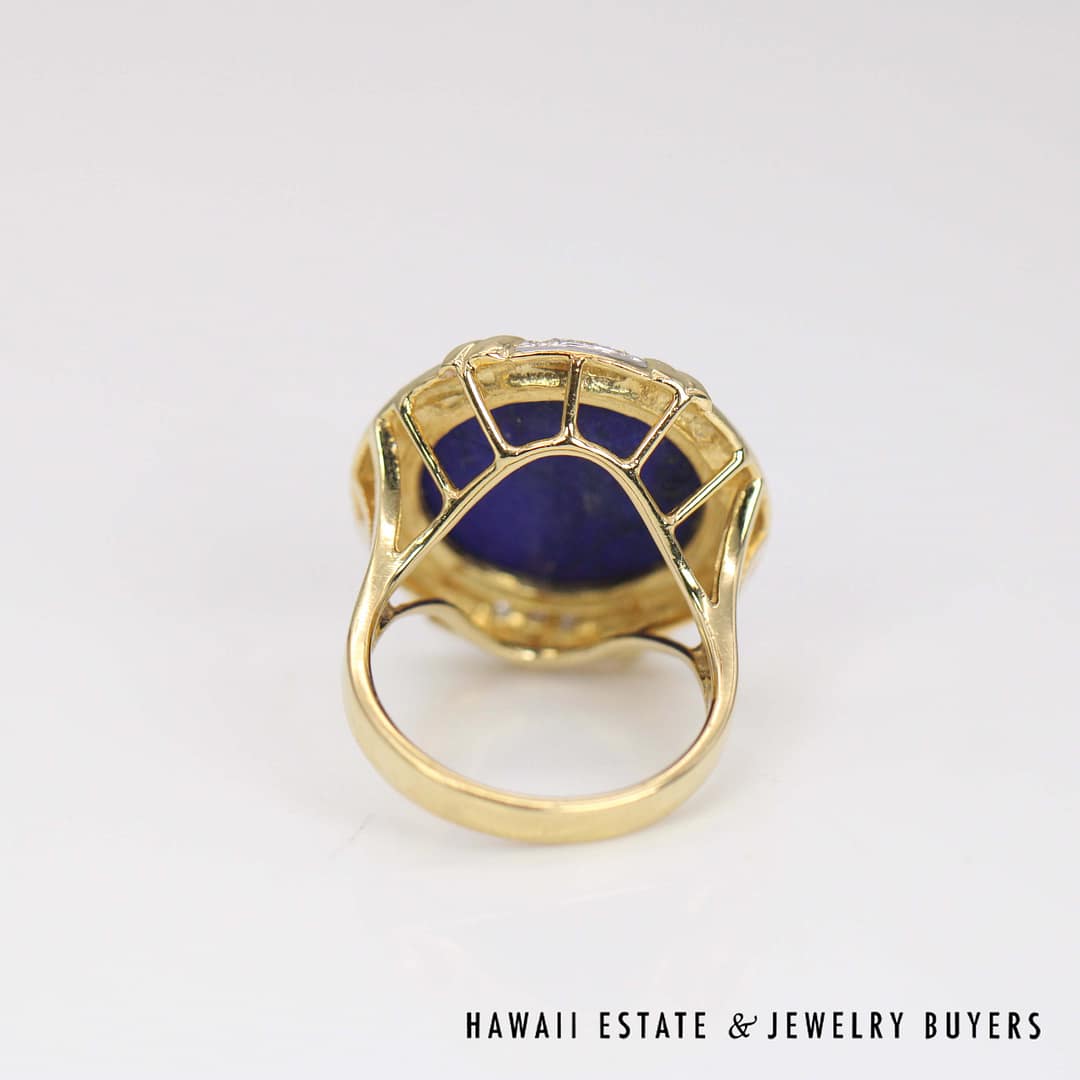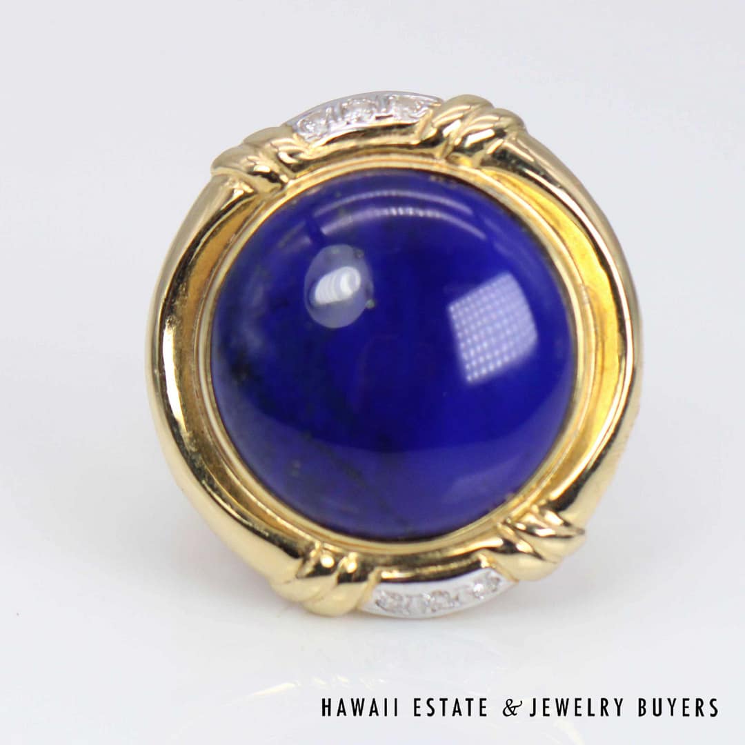 Elegant 15mm Round Lapis 0.03ctw Diamond Ring 14k Yellow Gold Size 6 featuring quality materials and timeless craftsmanship. A beautiful statement piece perfect for collectors and fine jewelry lovers.