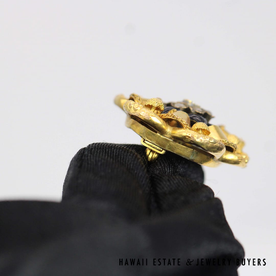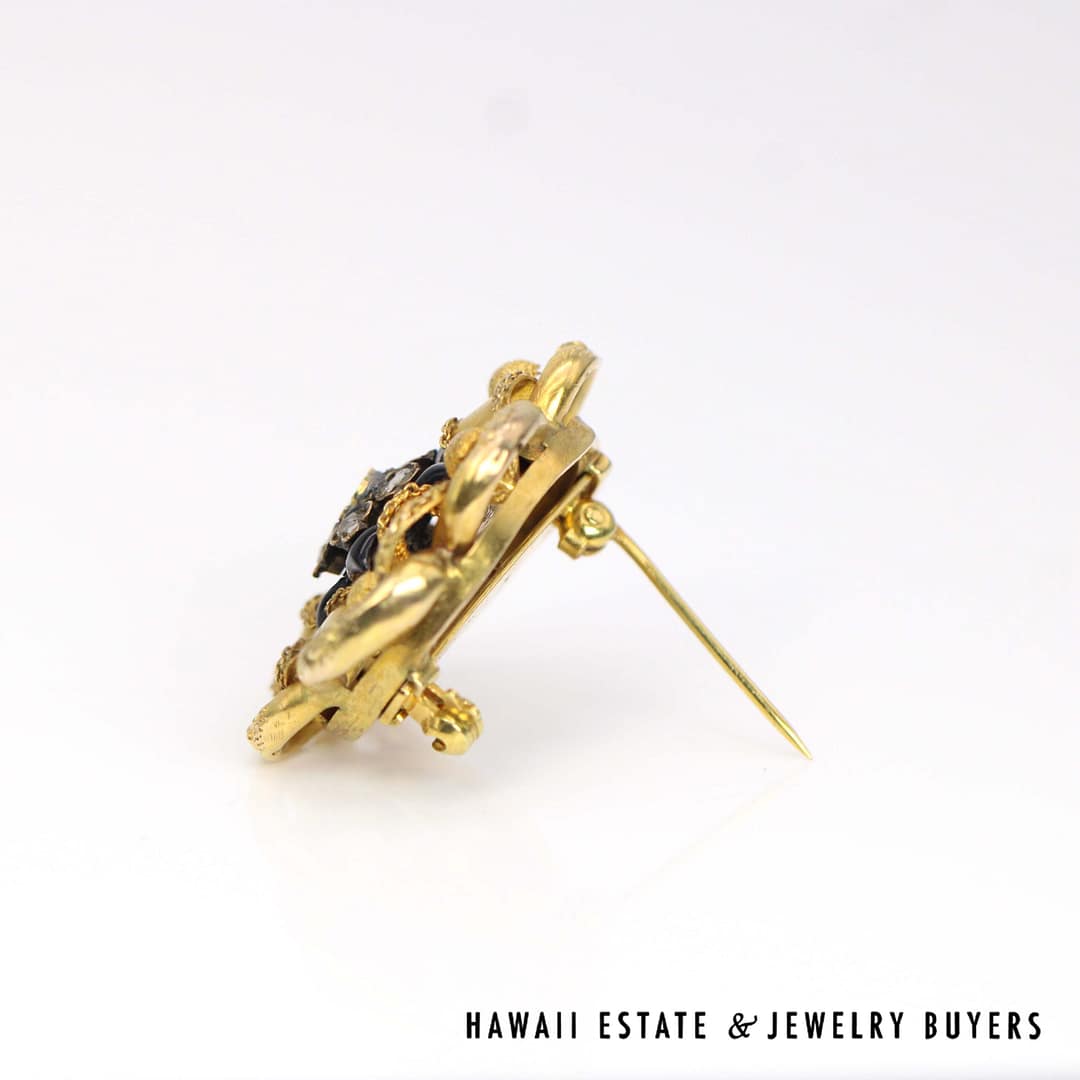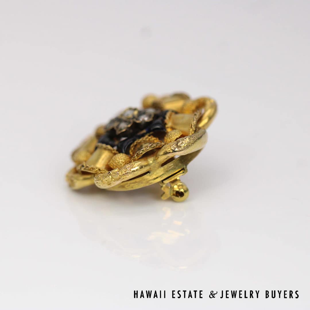 VINTAGE 1800's 11.7g 18KYG ROSE CUT DIAMOND ENAMEL BROOCH (2641-03)