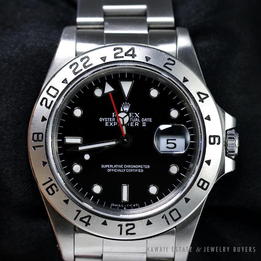 DescriptionROLEX EXPLORER II BLACK DIALSERIAL NUMBER EXXXX, YEAR 1990REFERENCE NUMBER 16570AUTOMATIC MOVEMENT WITH DATESTAINLESS STEEL 39MM CASE DIAMETERCOMES WITH ORIGINAL ROLEX BOX & MANUAL$7,000.00Out of stockSKU: 2493-01Category: Pre-owned Luxury WatchesTag: rolexRelated StylesANTIQUE AMERICAN WALTHAM YELLOW GOLD HUNTER’S CASE 18K YELLOW GOLD POCKET WATCH$5,000.00ROLEX RARE VINTAGE BUBBLE BACK 14K YELLOW GOLD OYSTER PERPETUAL WATCH 5015 1945$11,000.00HISTORIC ROLEX DIAMOND DIAL DAY-DATE PRESIDENTIAL 36mm WATCH W/ APPRAISAL$30,000.00MINT ROLEX 1979 OYSTER PERPETUAL DATE 1550 STAINLESS STEEL GOLD PLATED WATCH$6,800.00
