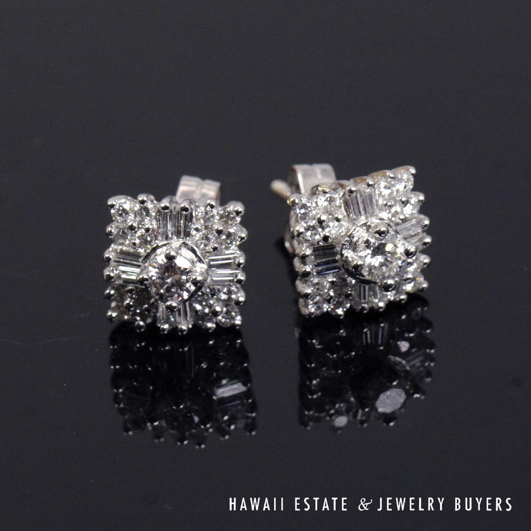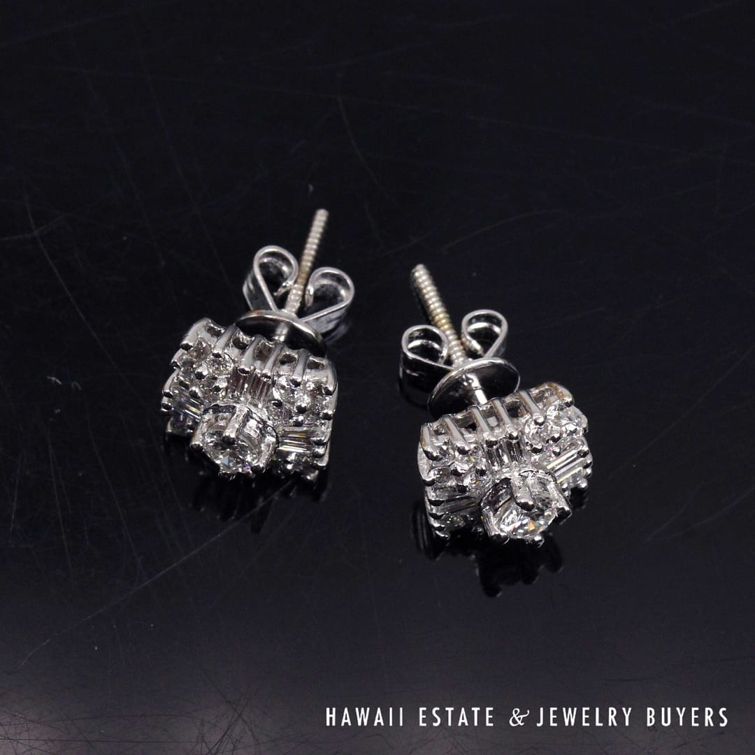 Home » Shop » 1ctw Diamond SI-GH 18K White Gold Cluster Stud Earrings