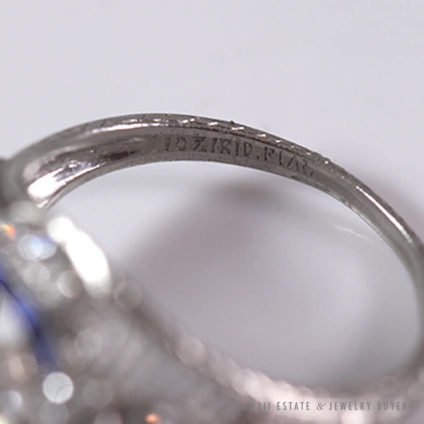 The ring is white platinum, stamped: 10% Irid. Plat.