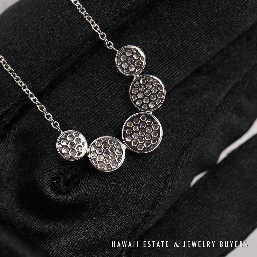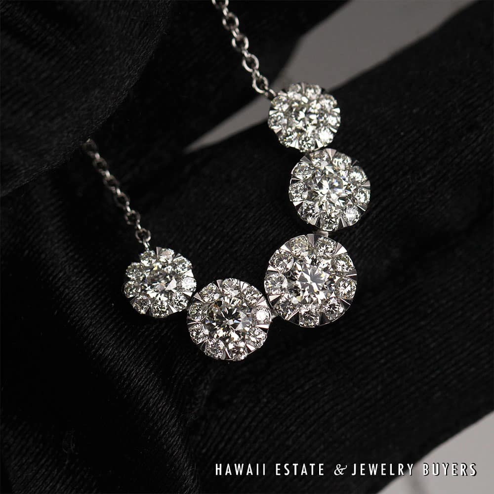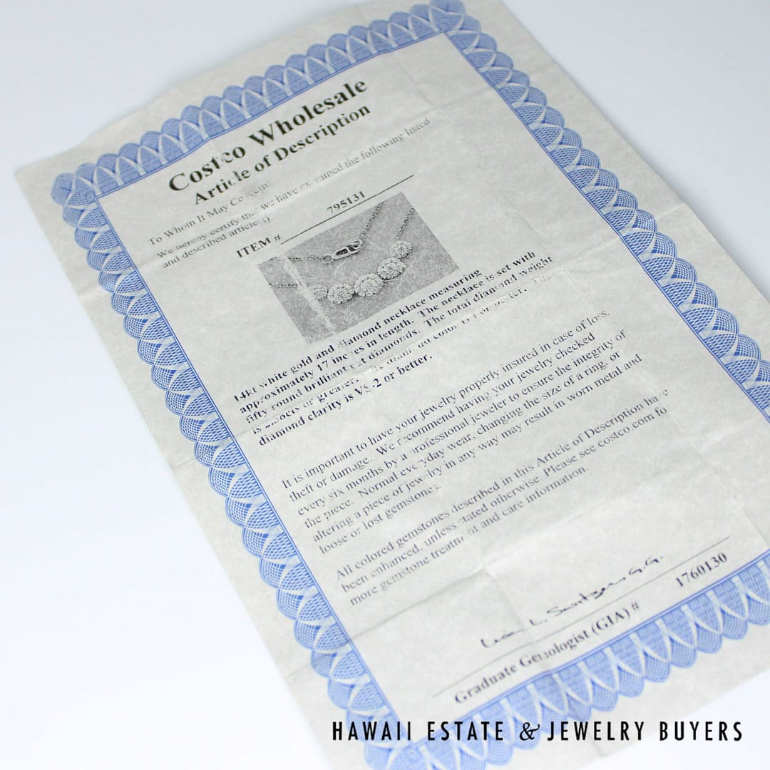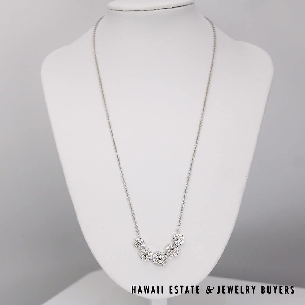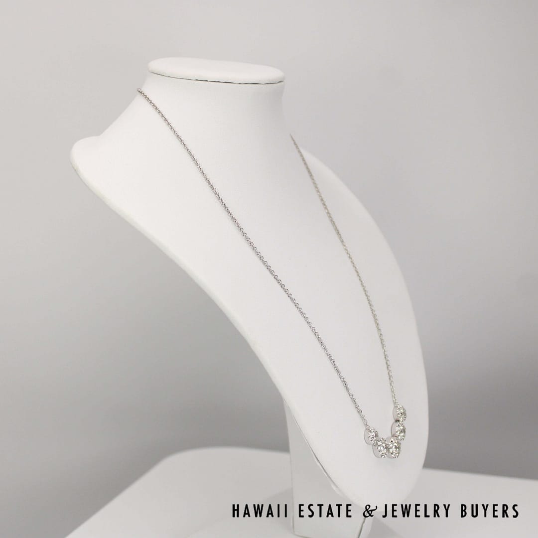 DescriptionGorgeous 18" necklace featuring 2.38ctw of sparkling diamonds.6.5g 14KWG 2.38ctw I-VS2 18 INCH NECKLACE (2789-03)$2,800.001 in stock2.38ctw Diamond 14K White Gold Necklace, 18in Length, 6.5g quantityAdd to cartMake OfferSKU: 2789-03Category: Pre-owned Diamond JewelryRelated StylesDiamond Drop Bezel Set Pendant & Rolo 14K White Gold Italy Designer Necklace$3,200.00Antique Victorian 1800s Old Mine Cut Diamond Bar Brooch$8,200.00Diamond White Gold Yellow Gold 14k Ribbon Pendant$1,350.00GIA CERTIFIED 4.4g 18K TWO TONE 4.71ct CUSHION CUT PINK-PURPLE SAPPHIRE 0.45ctw DIAMOND RING SIZE 5$25,000.00