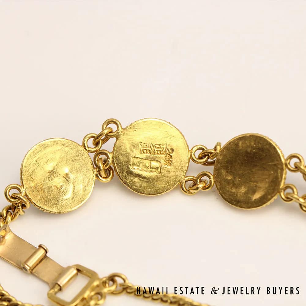 This stunning vintage jewelry set by H.Stern is a must-have for any jewelry collector. Crafted from 18k yellow gold, it features a necklace and ring set with multi-color gemstones. Ring is size 7, pendant measures 21x13mm, chain is 18 inch 1.3mm Stamped H 750.