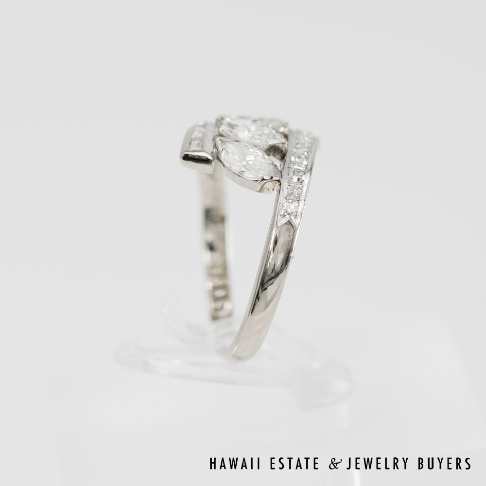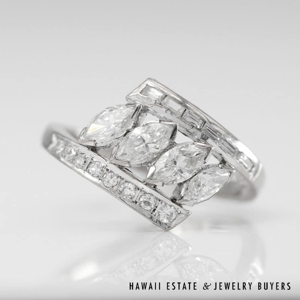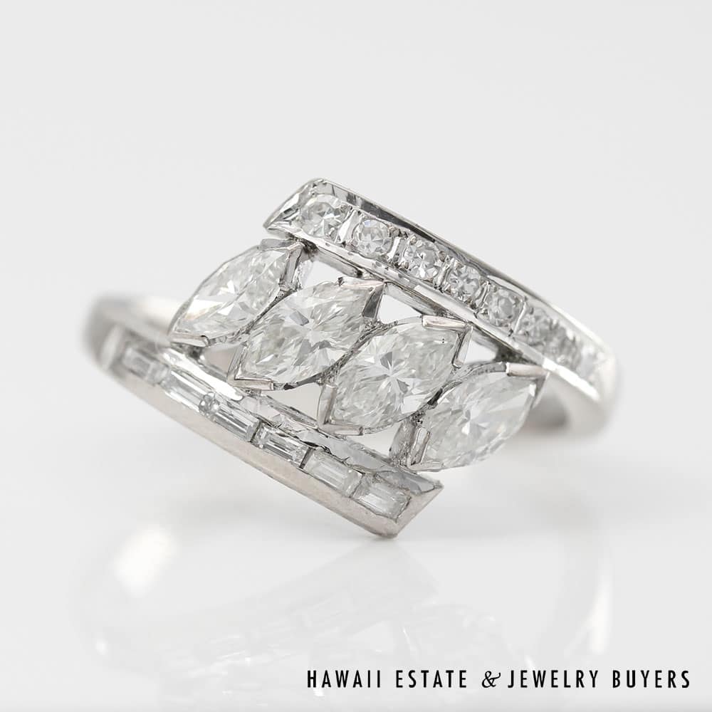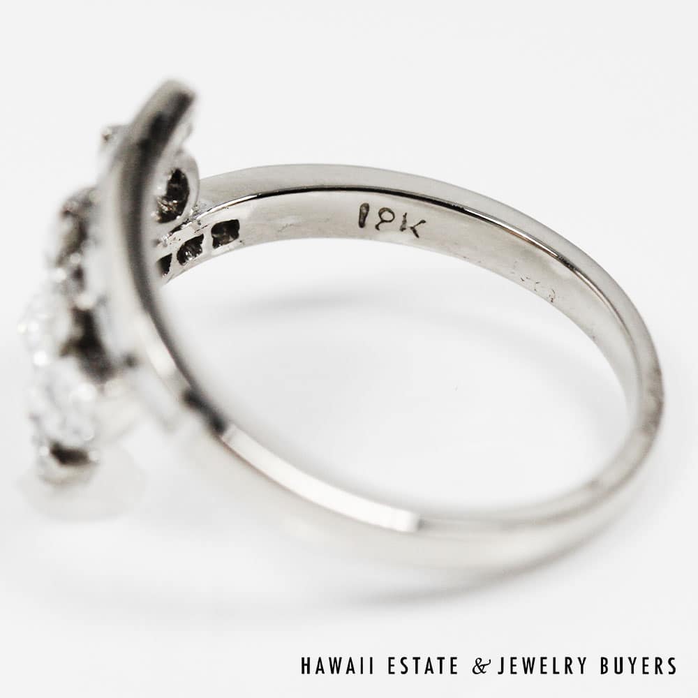 DescriptionSIZE 6Baguette, Marquise, and Single Cut Round Brilliant diamonds are VVS – VS avg. clarity, HIJ avg. color.Stamped 18k, but XRF tests as silver.3.0g 1.33ctw DIAMOND BYPASS RING SIZE 6 (2625-08)$1,600.001 in stock3.0g 1.33ctw DIAMOND BYPASS RING SIZE 6 quantityAdd to cartBuy withMake OfferSKU: 2625-08Categories: Diamond Jewelry, Pre-owned Diamond JewelryTags: 14KYG, diamond ring, pearl ringRelated StylesANTIQUE 2.60CT ROSE CUT PEAR DIAMOND – GIA FANCY LIGHT BROWN-YELLOW RING (SZ 5)$36,000.001.50CTW PRINCESS CUT 14K YELLOW GOLD MEN’S RING SIZE 8.25$2,500.00DIAMOND 4.2CTW 14K YELLOW GOLD TENNIS BRACELET 7″$4,200.00Diamond Drop Bezel Set Pendant & Rolo 14K White Gold Italy Designer Necklace$3,200.00
