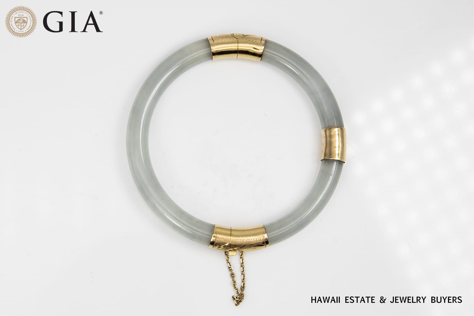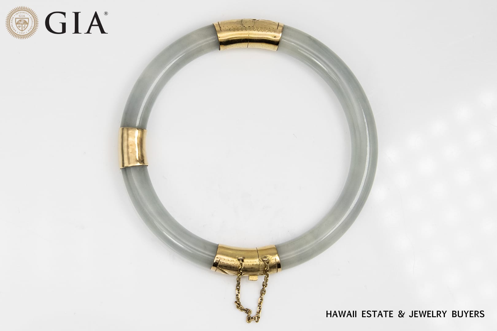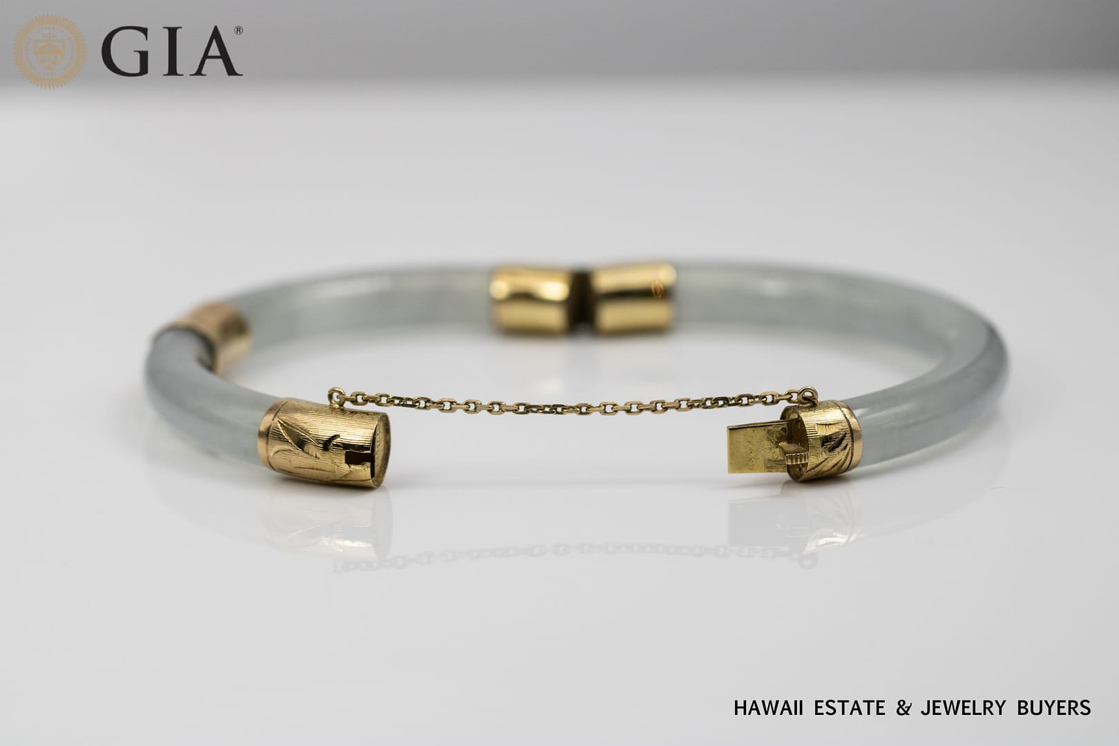 Description36.8g 14KYG LIGHT GREENISH GRAY JADE HINGED BANGLE BRACELET SIZE 7.5GIA Jade Report verifies Type A Jade. Known in the trade as Ice Jade.$6,500.001 in stock36.8g 14KYG LIGHT GREENISH GRAY JADE HINGED BANGLE BRACELET SIZE 7.5 quantityAdd to cartBuy withMake OfferSKU: 2446-66Categories: Jade Jewelry, Pre-owned Jade JewelryTags: 14k yellow gold, bracelet, gia, GIA JADE, jade, yellow goldRelated StylesMing’s Hawaii Natural Green Jade Do-nut W/ Cultured Pearl 14K Yellow Gold Ring$1,250.00Ming’s Hawaii Jade Green & Pearl Cluster 14K Yellow Gold Ring Earrings Brooch Set$3,800.00Vintage 1940’s Amethyst Wide Flexible 14K Yellow Gold Bracelet$5,500.00Ming’s Hawaii Natural Orange-Brown Jade Cabochon 14K Yellow Gold Clip-On Earrings$1,150.00