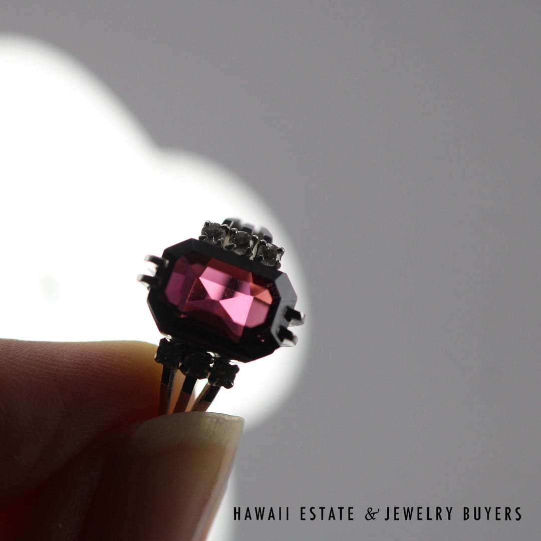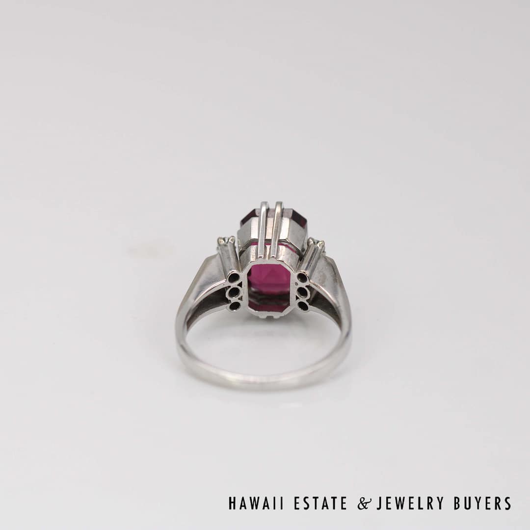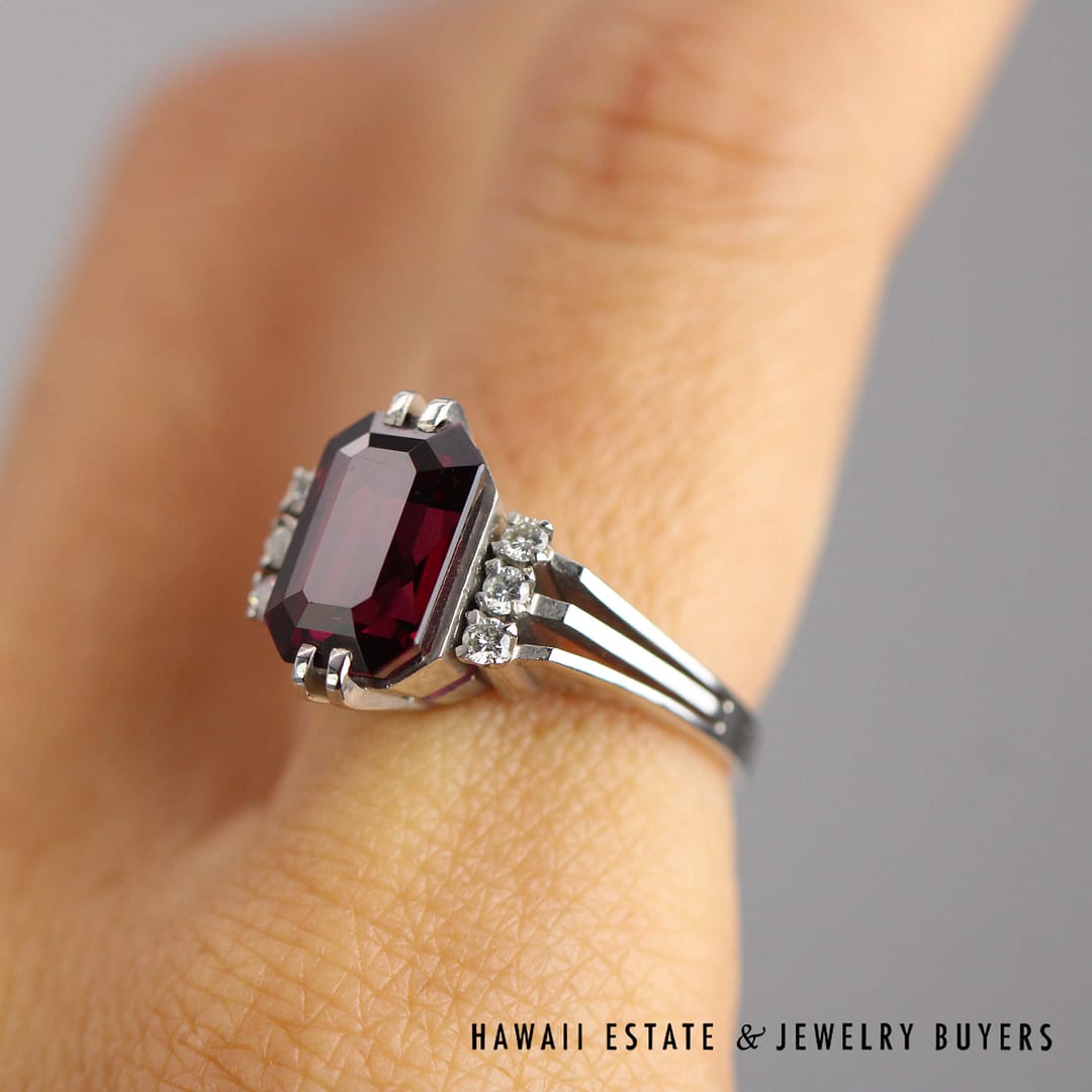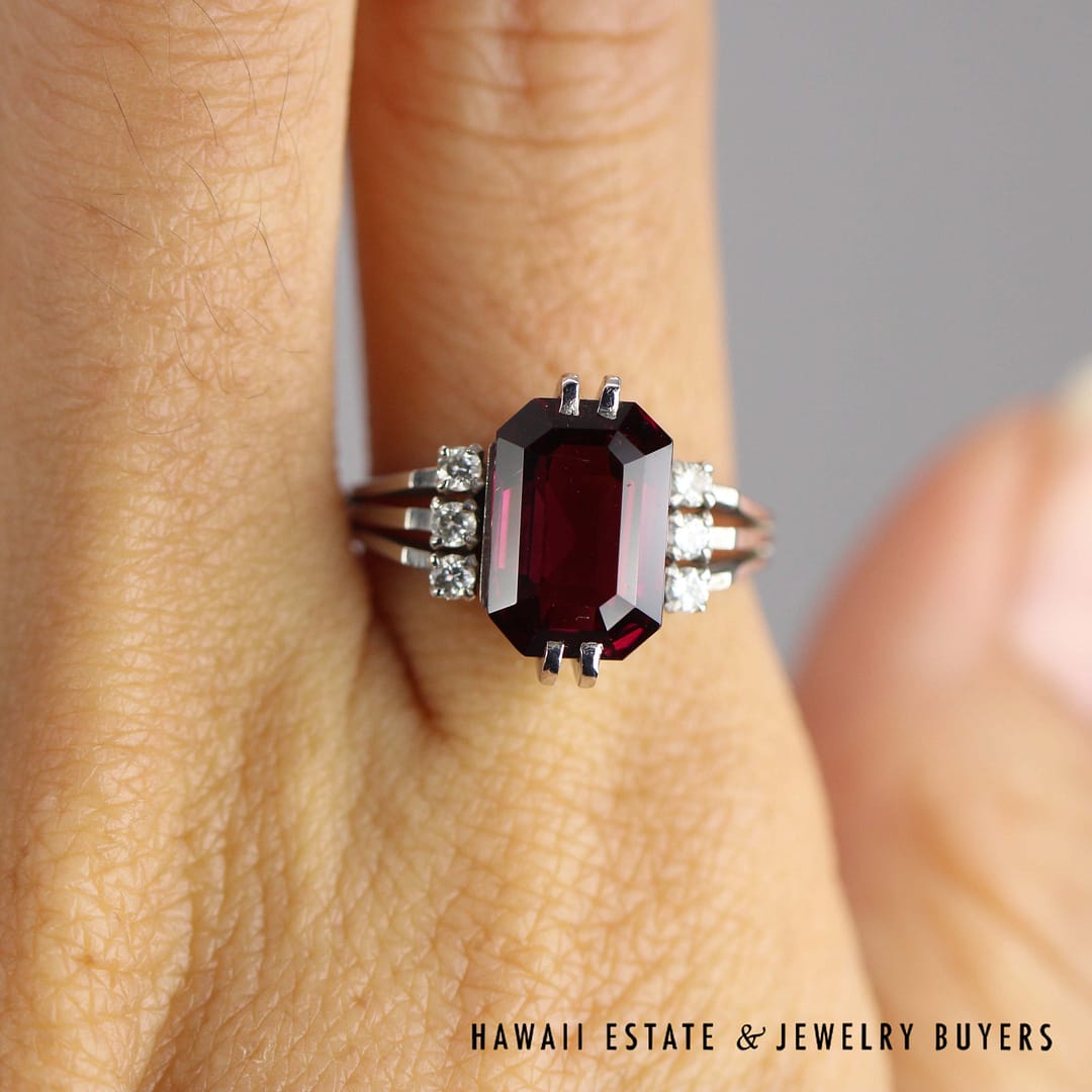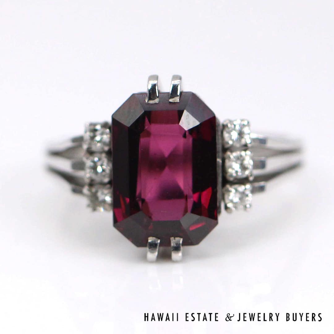 Elegant 4.40ct Rhodolite 0.06ctw Diamond Ring 14k White Gold Size 6 featuring quality materials and timeless craftsmanship. A beautiful statement piece perfect for collectors and fine jewelry lovers.