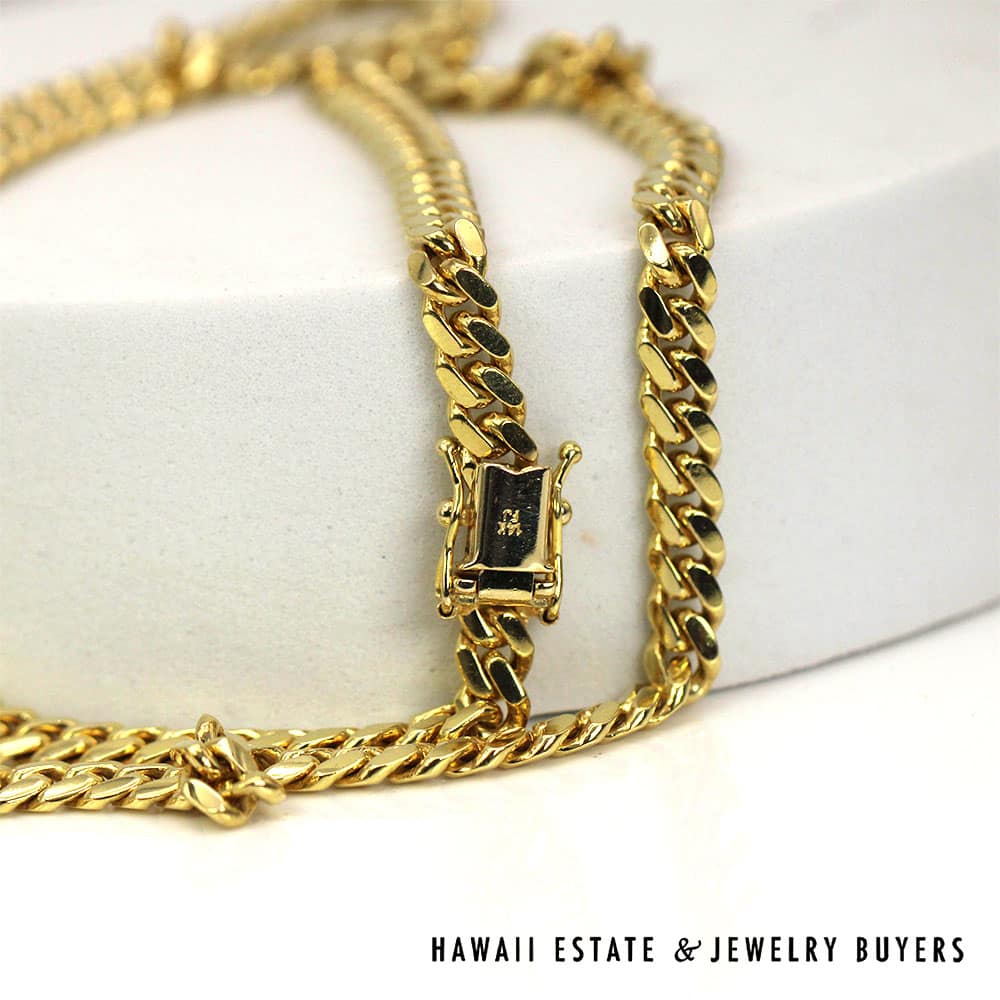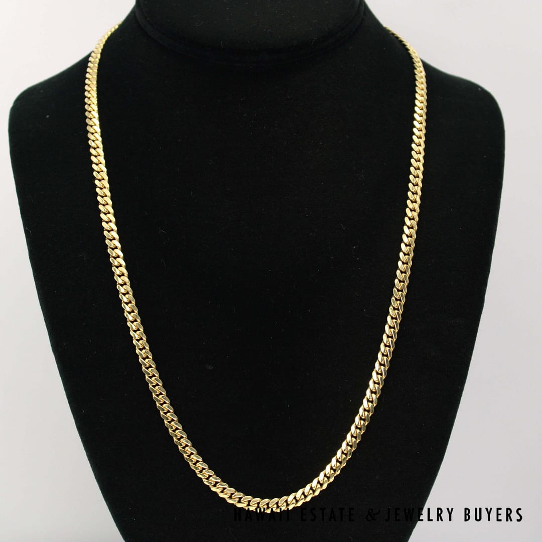 Description41.9g 14KYG 4.8mm CUBAN 22" CHAIN (2731-01)$4,200.001 in stock41.9g 14KYG 4.8mm Cuban 22" Chain quantityAdd to cartMake OfferSKU: 2731-01Category: Pre-owned Gold jewelryRelated Styles25.4g 14KYG 1.75ctw DIAMOND HINGED BANGLE BRACELET SIZE 6.25$2,500.00GIA 16.5g 14KWG 38.10ct AQUAMARINE AND DIAMOND RING SIZE 9$18,000.00MING’S 8.5g 14KYG BLACK JADE 23x11mm MARQUISE CAB RING SIZE 7$2,125.00MING’S 5.0g 14KYG SAKURA BYPASS RING SIZE 6.5$1,500.00