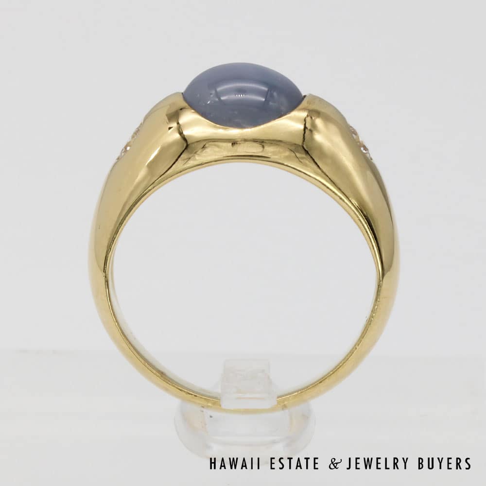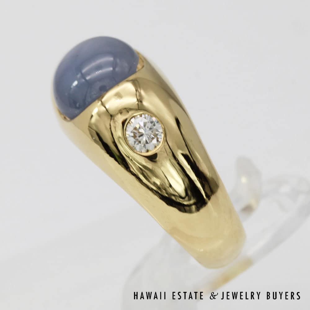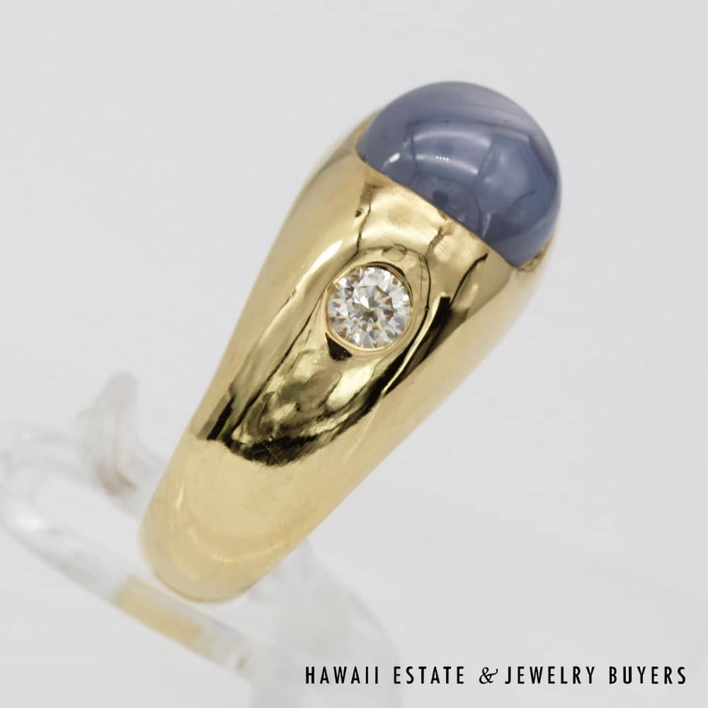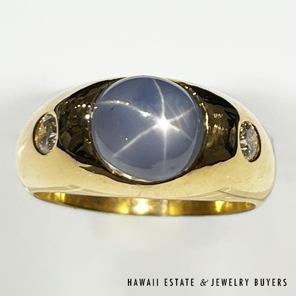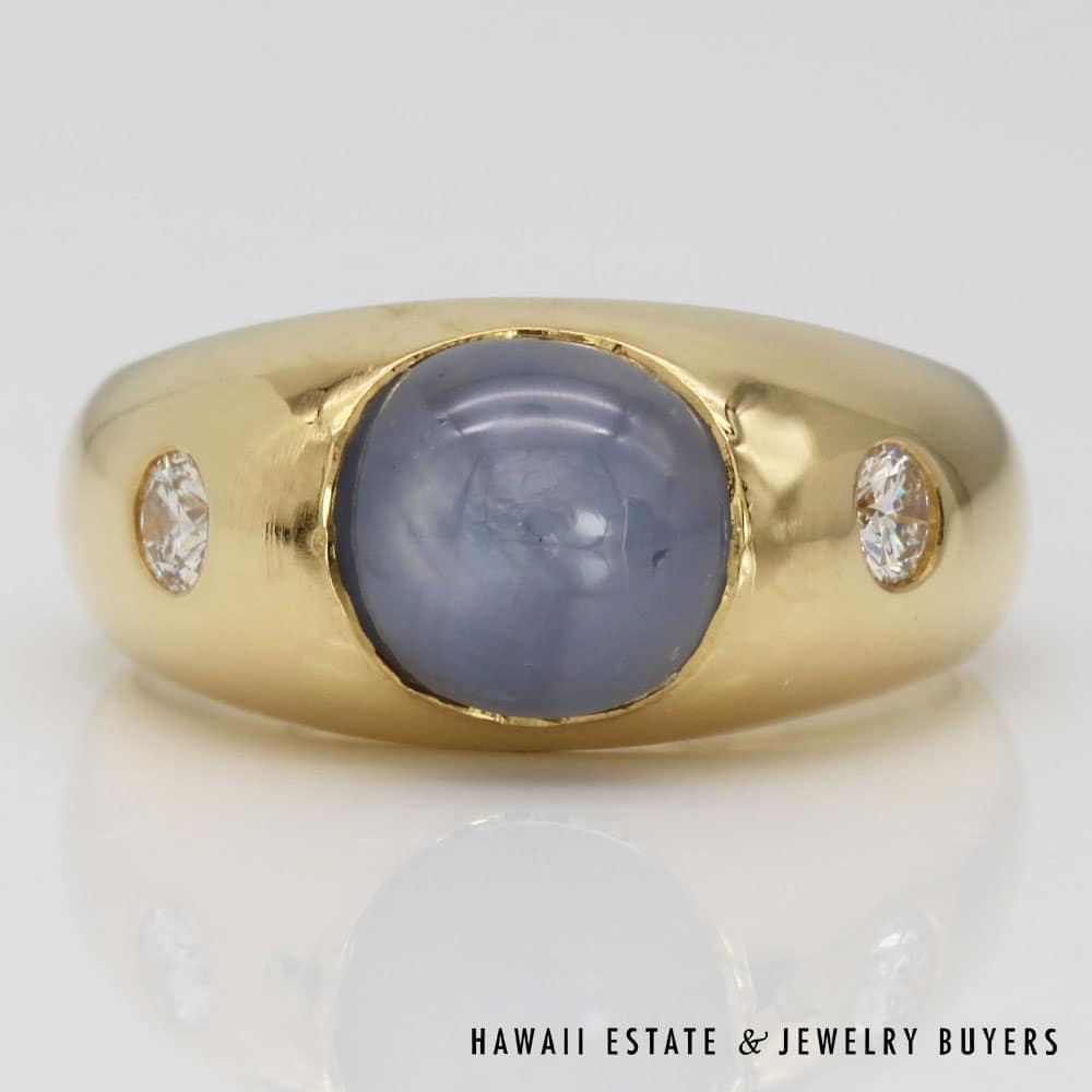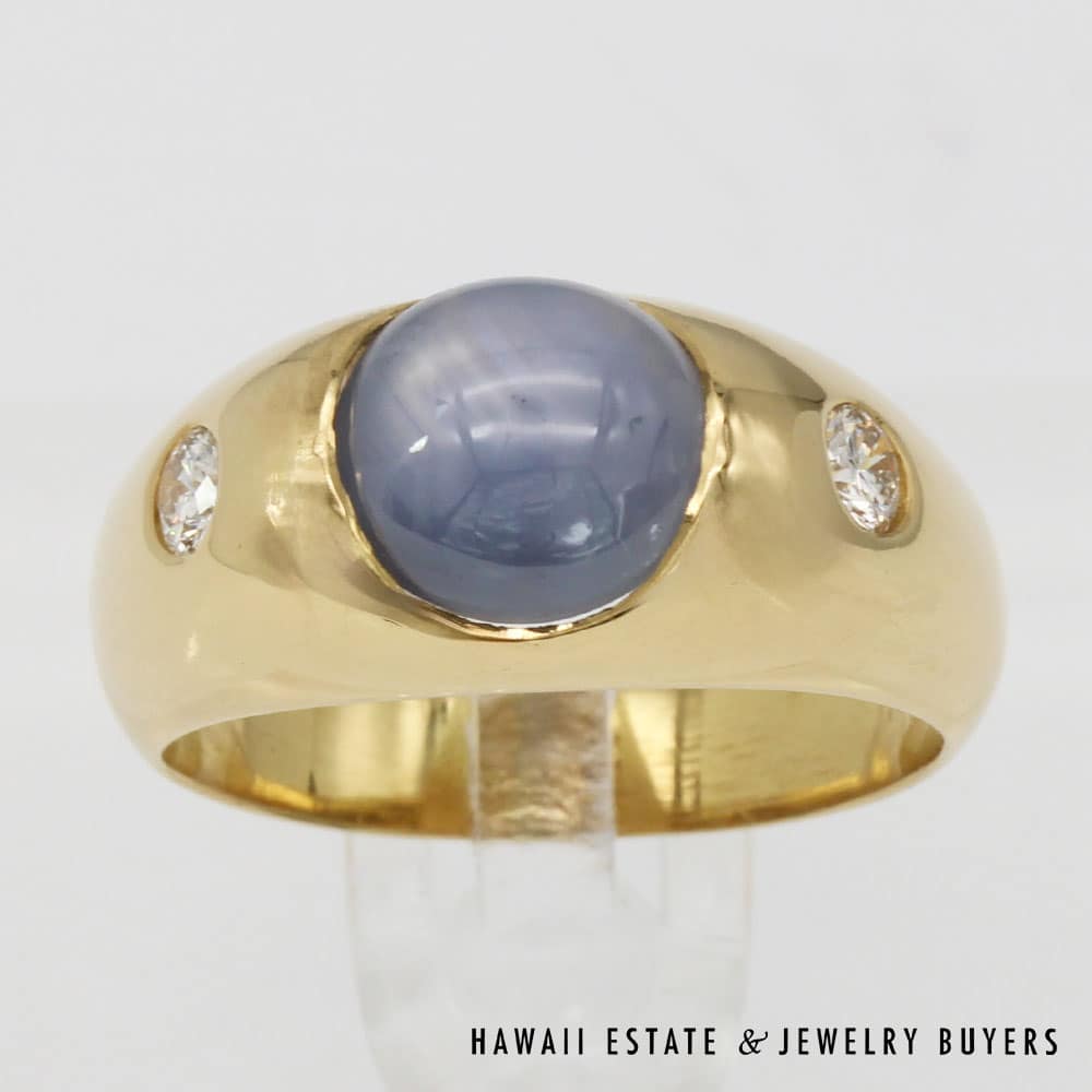 Description7.9g 18K YELLOW GOLD 3.75ct GRAY-BLUE STAR SAPPHIRE AND 0.28ctw DIAMOND GYPSY SET RING SIZE 6.5Note: All weights are estimatedStamped 18K J.M $1,600.001 in stock7.9g 18K YELLOW GOLD 3.75ct GRAY-BLUE STAR SAPPHIRE AND 0.28ctw DIAMOND GYPSY SET RING SIZE 6.5 quantityAdd to cartBuy withMake OfferSKU: JG121418-20Category: Pre-owned Vintage JewelryTags: 18K YELLOW GOLD, 18k yellow gold star sapphire ring, sapphire, SAPPHIRE RING, star sapphire, Star sapphire and diamond ringRelated StylesGIA Grade A Nephrite Jade Twist Bangle$3,500.00Vintage Fire Opal & Diamond 18K Ring$7,000.0022.8g 18KWG TYPE A IMPERIAL JADE BUDDAH HAND CARVING w/2.50ctw DIAMOND PENDANT MEASURES 58x28mm (1395-01)$13,900.00Natural Grade A White Jade Archer Ring$3,800.00