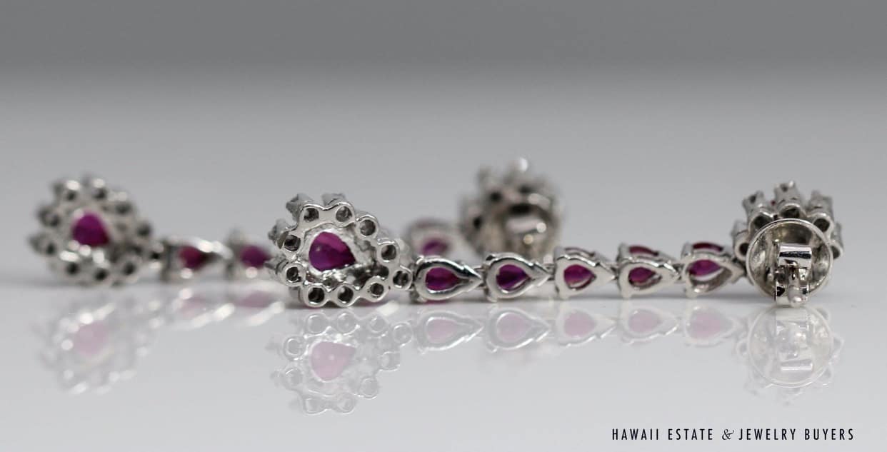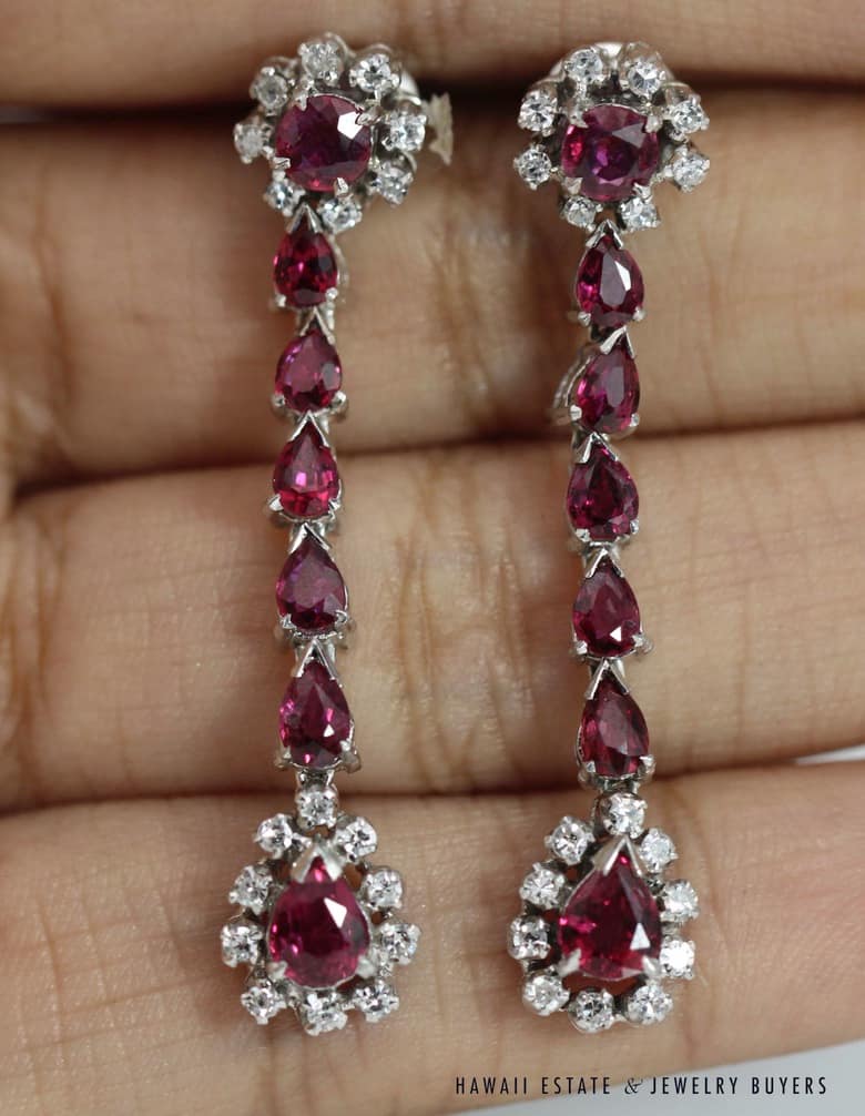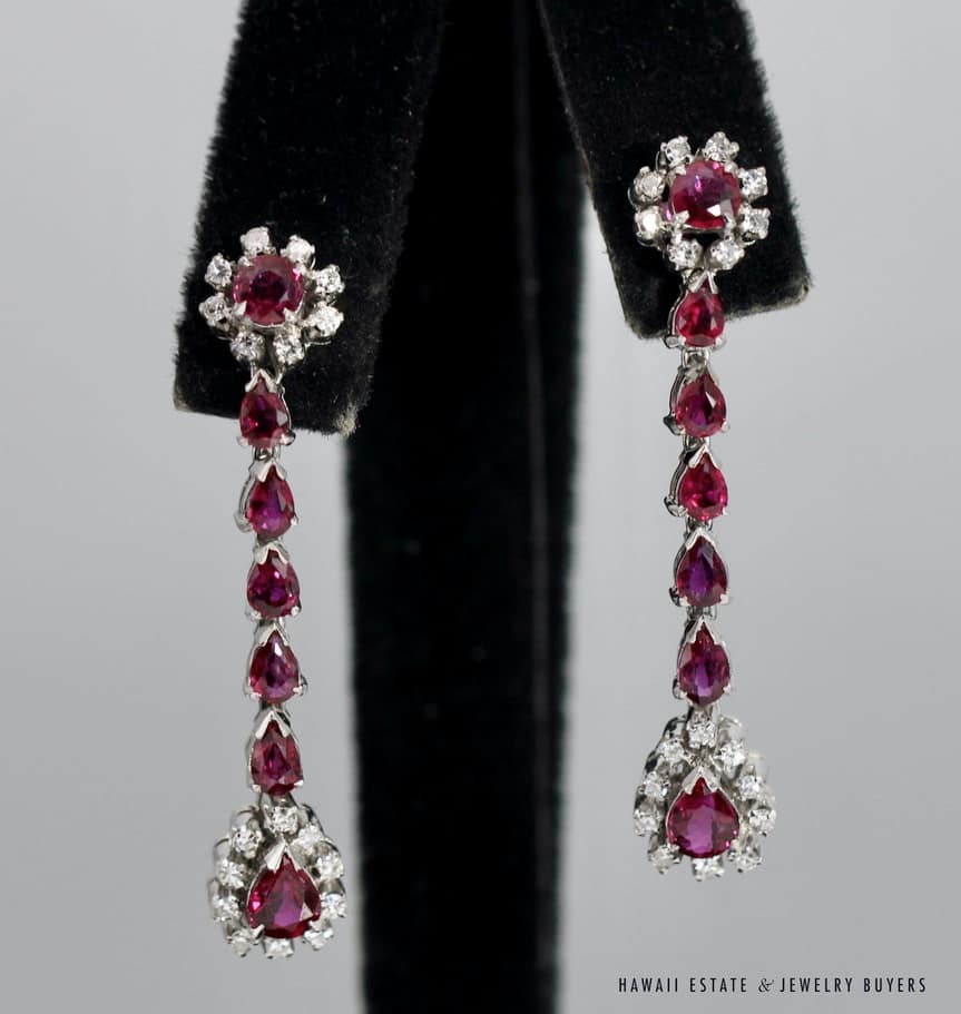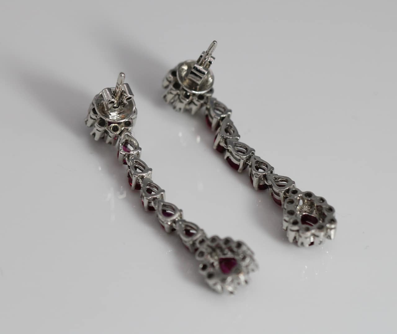 EACH EARRING IS SET WITH SIX PEAR SHAPED RUBIES & ONE ROUND CUT RUBY, ESTIMATED APPROX. 3.70ctw FOR THE PAIR.