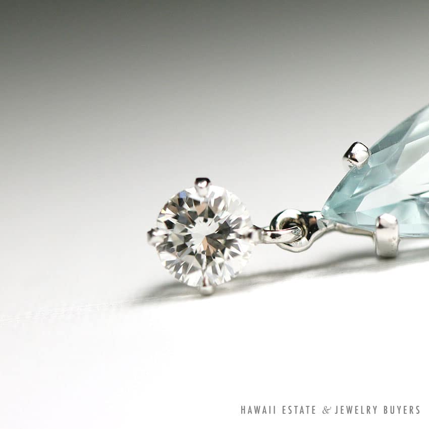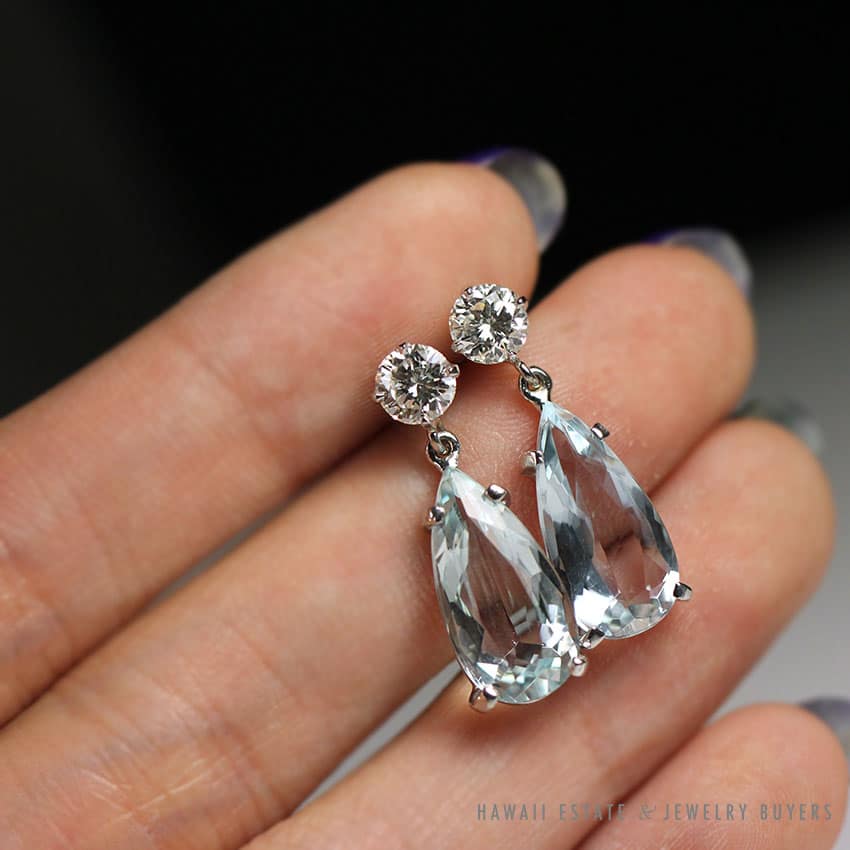 Description Aquamarines are lightly included and well matched.Diamonds are SI1 FG clarity/color.Earrings weigh 4.1g and measure approx. 24mm length.$4,300.001 in stock7.09ctw AQUAMARINE & .94CT DIAMOND 14K WHITE GOLD TEAR DROP EARRINGS quantityAdd to cartBuy withMake OfferSKU: 1783-04Category: Pre-owned Vintage & Jade JewelryTag: aquamarineRelated StylesCertified Grade “A” Lavender Jade Yellow Gold Ring$2,700.00Certified Grade A Mottled Green Graduated Bead Necklace$8,000.00Natural Lavender Cabochon Pendant$2,300.00Certified Jade White Carved Bangle Bracelet$5,300.00