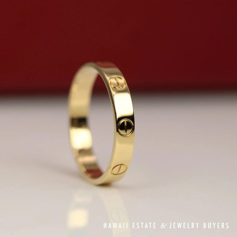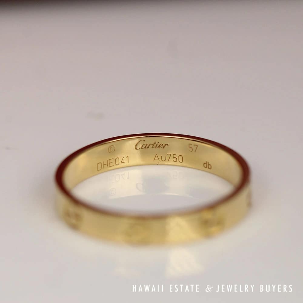 DescriptionCartier Love Ring Band, Yellow Gold 18K, stamped Cartier 57 DHE041 Au750Ring size 57 (approx. US 8)3.5mm widthPROFESSIONALLY POLISHED and ready to wear or gift!CARTIER 3.3g 18KYG 3.5mm LOVE RING SIZE 57$850.00Out of stockSKU: (2260-01)Category: Pre-owned Designer JewelryTag: CARTIERRelated StylesRoberto Coin Baby O Earrings$16,000.00Oscar Heyman Emerald & Diamond Three Stone Platinum Ring$12,750.00MIKIMOTO AAA AKOYA PEARL 4-6MM WHITE 14K YELLOW GOLD FLOWER BROOCH PIN & EARRINGS SET$2,000.00Tiffany & Co Angela Cummings 18K Earrings$4,500.00