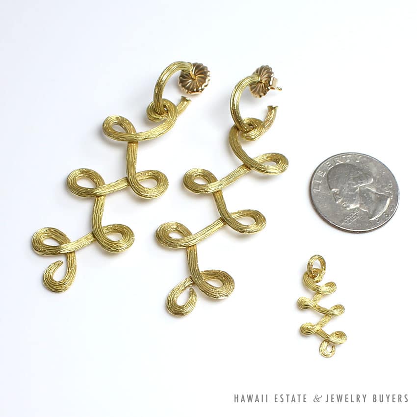 Earrings approximately 2 3/4″ drop. Stamped 750 H S L (Left) and R (Right), backings not H. Stern but replacement stamped 14k. Both earrings weigh approximately 20g.
