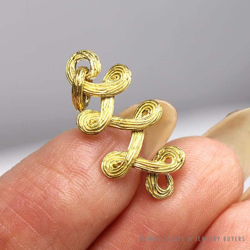 From H. Stern Website: “The Celtic tribes of medieval Europe disseminated their adornments and drawings full of repetitive symbols through many countries. These interconnected symbols are the main references for this collection, primed with exquisite texture and finish. Cut-out earrings, large rings and cuff bracelets create the illusion of continuous, infinite sand dunes, in textured 18K gold.”