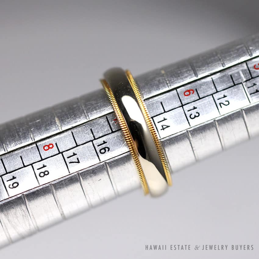 DescriptionTIFFANY & CO. CLASSIC MILGRAINSIZE: 6.75STAMPED: TIFFANY & CO. 750PROFESSIONALLY POLISHED IN 2019PLEASE NOTE: RING APPEARS TO BE TWO TONED IN PHOTOS BUT IT IS 18K YELLOW GOLD ONLY$1,200.001 in stockAUTHENTIC TIFFANY & CO. 18K YELLOW GOLD MILGRAIN WEDDING BAND RING 5MM (SZ 6.75) quantityAdd to cartBuy withMake OfferSKU: 2364-03Category: Pre-owned Designer JewelryTags: tiffany, tiffany & co., tiffany and coRelated StylesTiffany & Co Platinum Diamond Eternity Band$1,800.00Roberto Coin Cento Diamond Ring$3,800.00TIFFANY & CO. NATURAL GIA BLUE SAPPHIRE & .77CTW DIAMOND PLATINUM RING W/ PAPERS SIZE 6$10,000.00STEVEN KRETCHMER ENGAGEMENT RING ETOILE WEDDING BAND SET PLATINUM .98CTW SZ 4.25$9,500.00