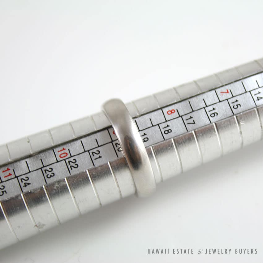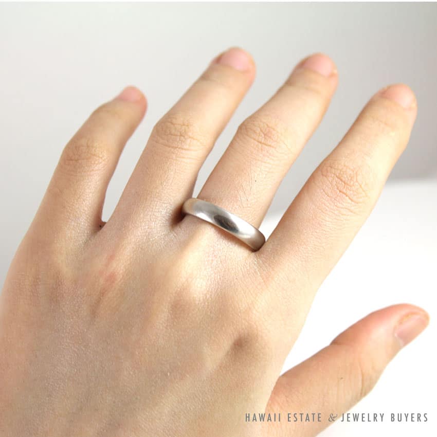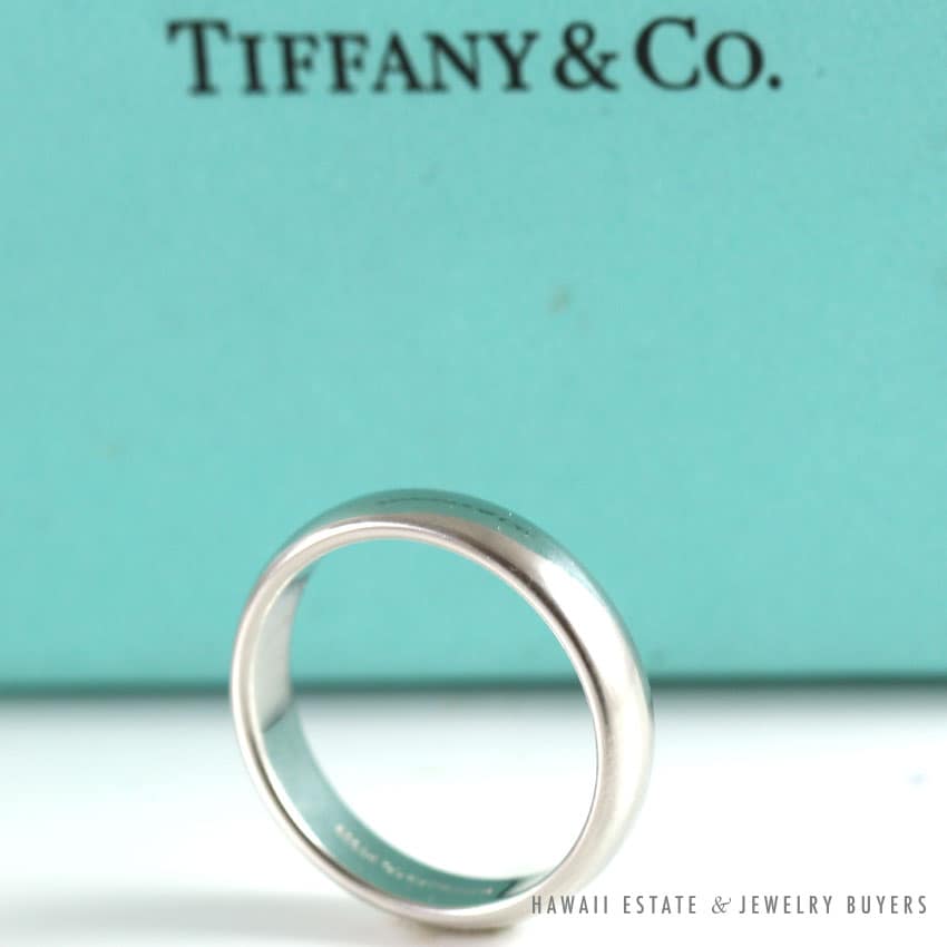 DescriptionAUTHENTIC TIFFANY & CO. CLASSIC WEDDING BAND RING IN PLATINUM 4MMRING ONLY – THIS ITEM DOES NOT COME WITH ANY ACCESSORIES. $900.00Out of stockSKU: 2013-03Category: Pre-owned Designer JewelryRelated StylesTiffany & Co Angela Cummings 18K Earrings$4,500.00MARAMENOS & PATERA DIAMOND 18K YELLOW GOLD SYMMETRY COLLECTION 1990’S BRACELET & RING SET$5,250.00PANDORA CHARM BRACELET WITH 13 PANDORA CHARMS STERLING SILVER W/ BOX$500.00MIKIMOTO AAA AKOYA PEARL 4-6MM WHITE 14K YELLOW GOLD FLOWER BROOCH PIN & EARRINGS SET$2,000.00