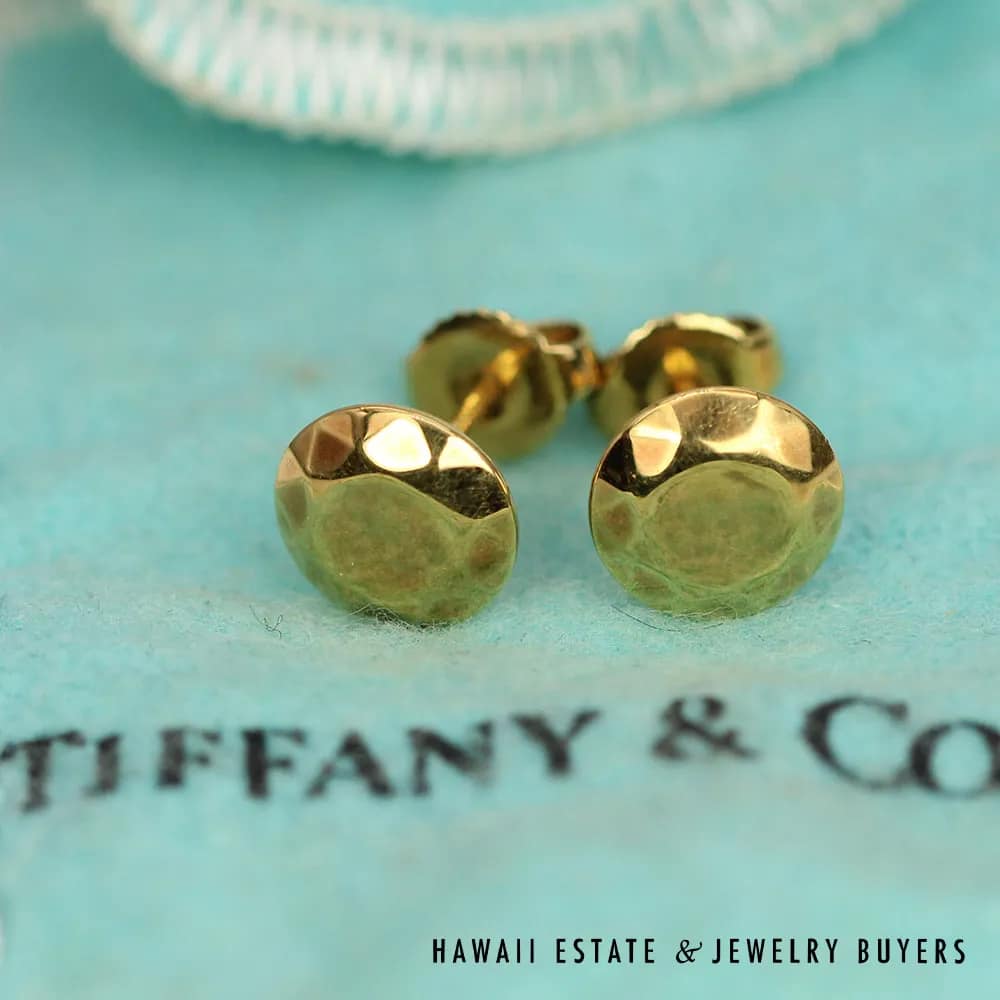 These elegant Tiffany & Co. earrings are a must-have for any fine jewelry collection. Crafted from 18k yellow gold and designed by Elsa Peretti, these stud earrings are perfect for everyday wear or a special occasion. The earrings are called the “2 Carat” Facet Design but feature a minimalist design with no stone for a timeless look that will never go out of style. The earrings come with a pouch for the safekeeping of your authentic Tiffany & Co. piece.