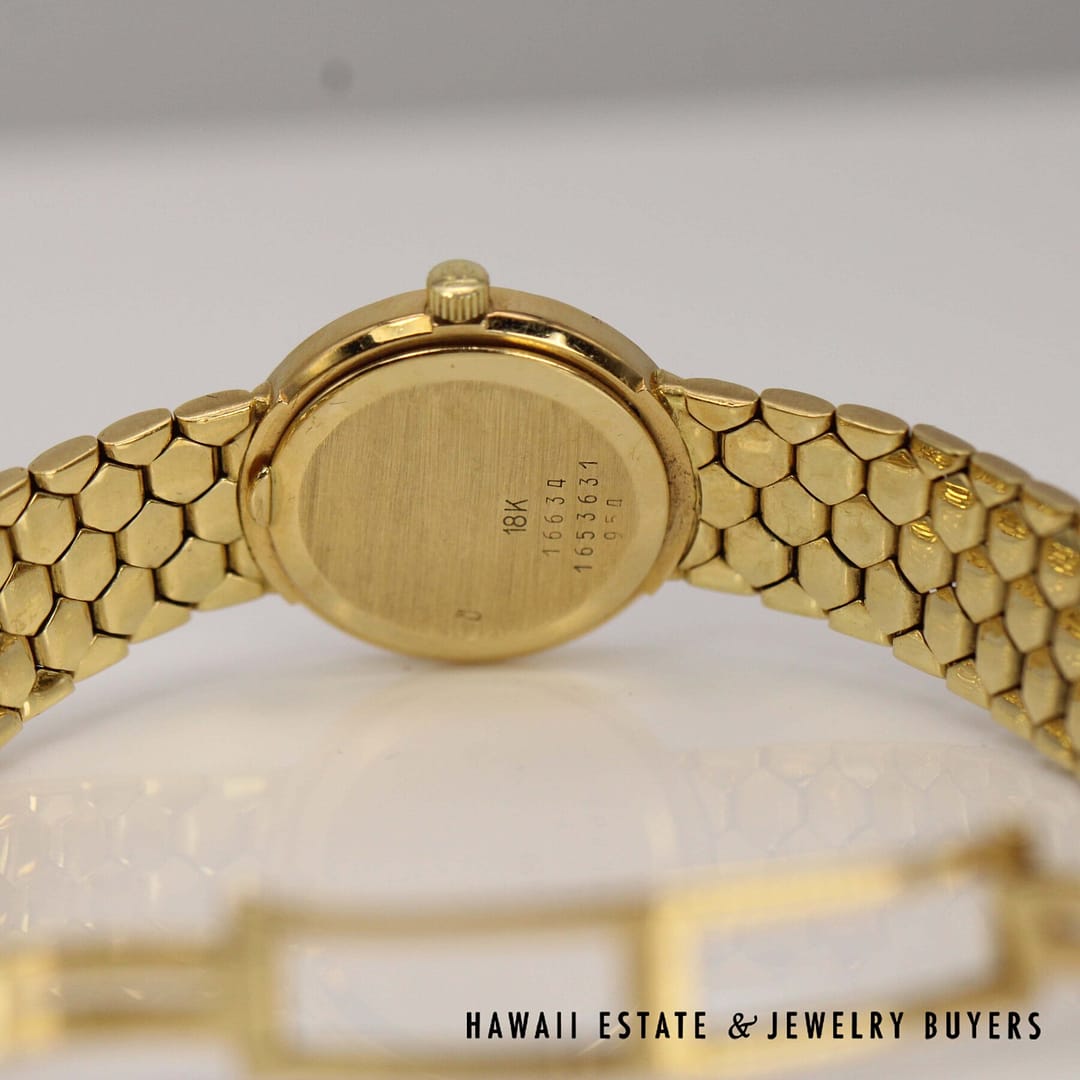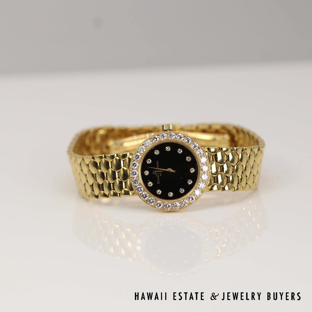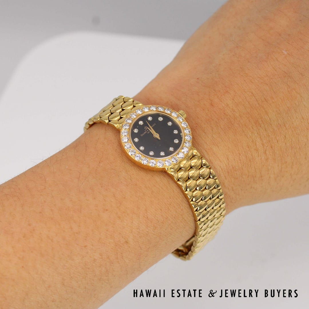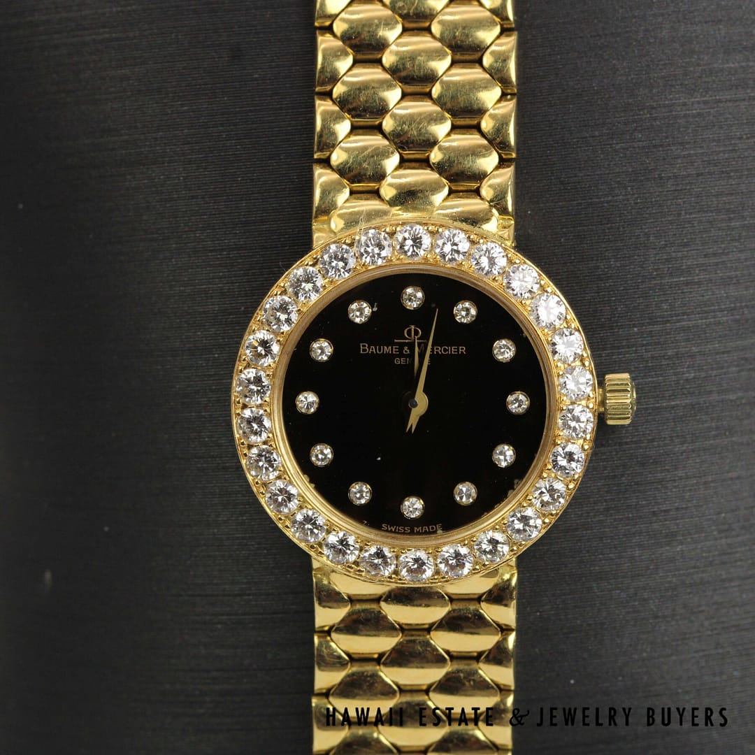 DescriptionBack of case is stamped 18K 1663 1653631 954, Diamonds are VS/GH 1.00ctwBAUME & MERCIER 46.36g 18KYG BLACK DIAMOND DIAL DIAMOND BEZEL LADIES WATCH SIZE 6 (2948-07)$6,700.001 in stockBaume & Mercier 46.36g 18KYG Black Diamond Dial Diamond Bezel Ladies Watch Size 6 quantityAdd to cartMake OfferSKU: 2948-07Category: Pre-owned Luxury WatchesRelated StylesANTIQUE HUNTER’S CASE ELGIN 14K YELLOW GOLD POCKET WATCH W/ PAPER APPRAISAL$4,000.00BREITLING NAVITIMER MONTBRILLIANT A41330 ORIGINAL LEATHER STRAP WATCH W/ BOX$3,800.00LADIES BLANCPAIN VILLERET 28MM 18K ALLIGATOR MECHANICAL SWISS WATCH w/ APPRAISAL$3,800.00TIFFANY & CO. AUTHENTIC DIAMOND ATLAS DOME STAINLESS STEEL WATCH$1,650.00