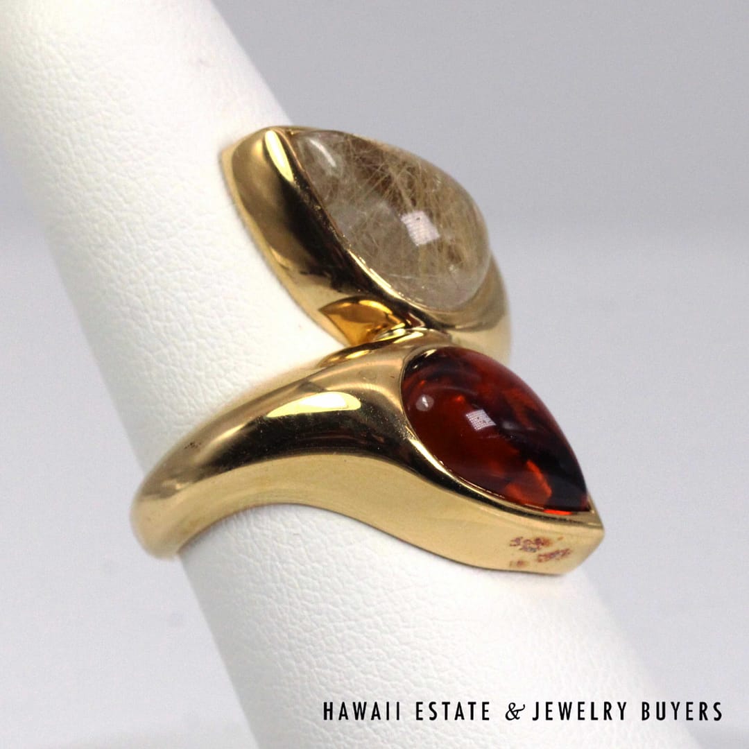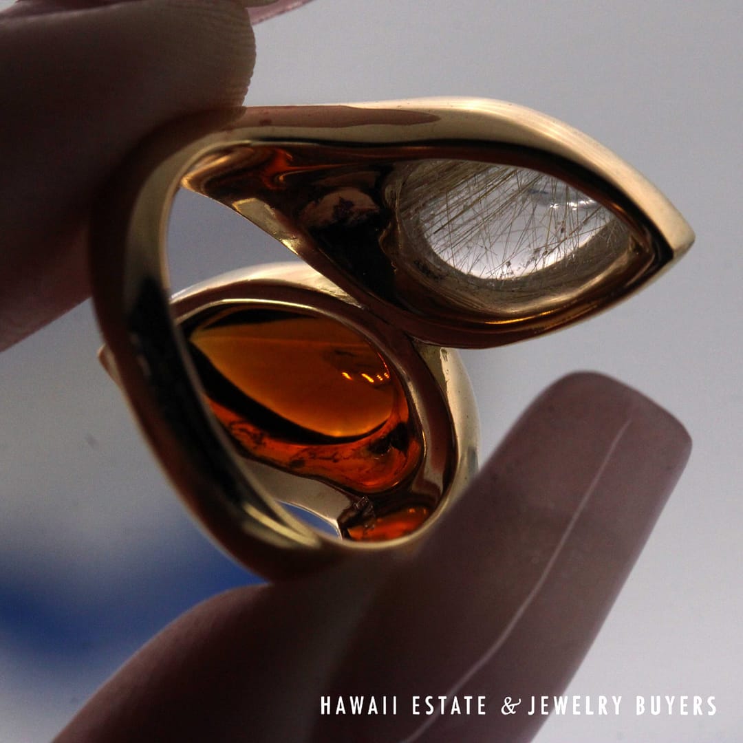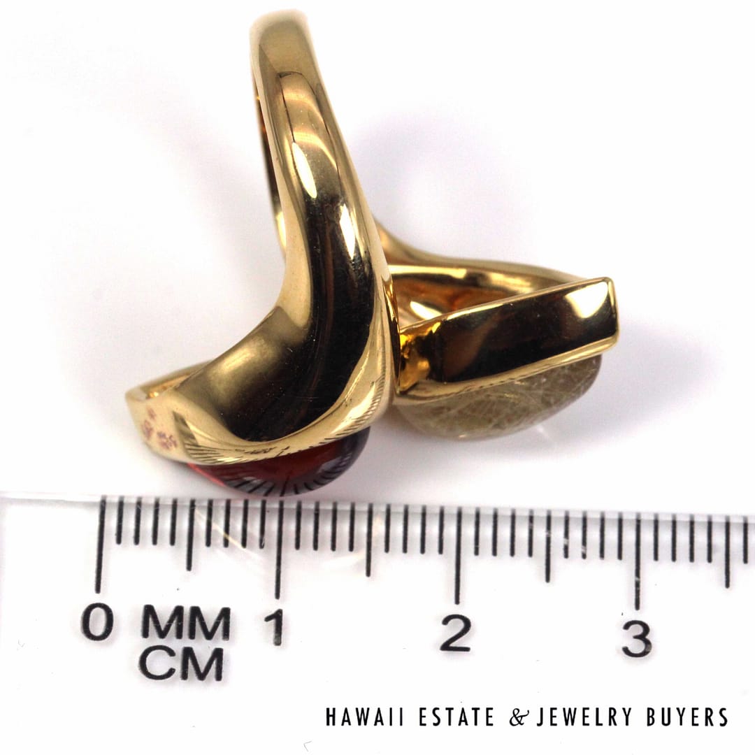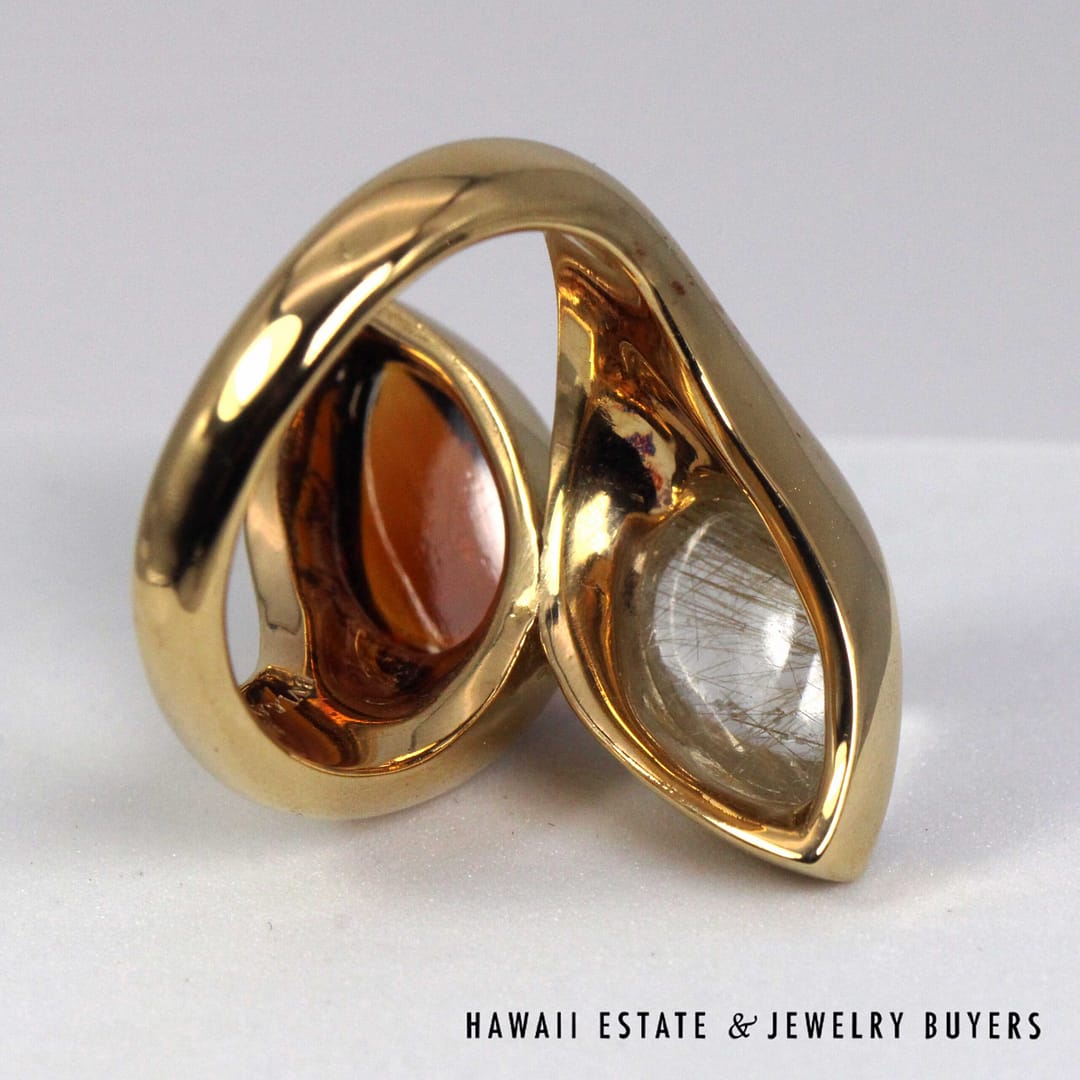 BVLGARI 18.2g 20KYG 5ctw RUTILATED QTZ & MADEIRA CIT VINTAGE MOI ET TOI RING SIZE 7.25(3109-02)