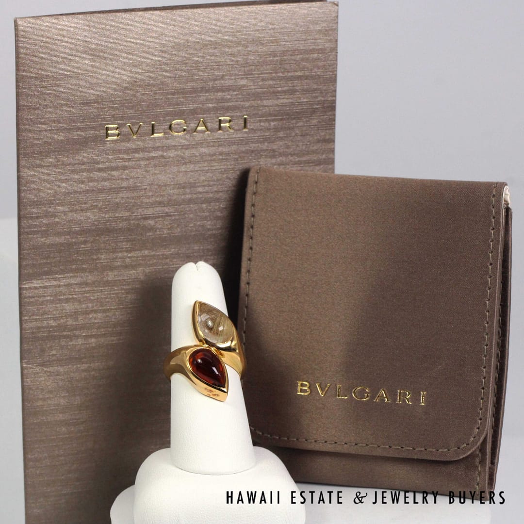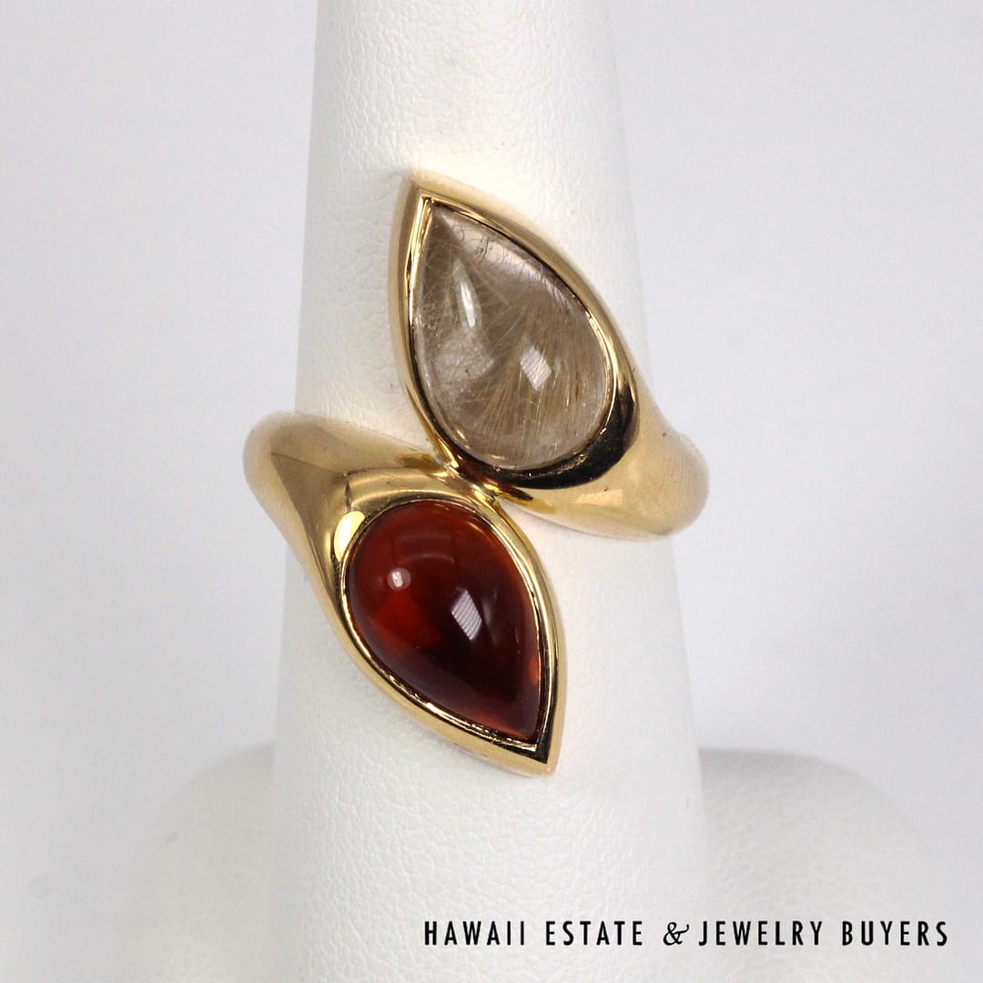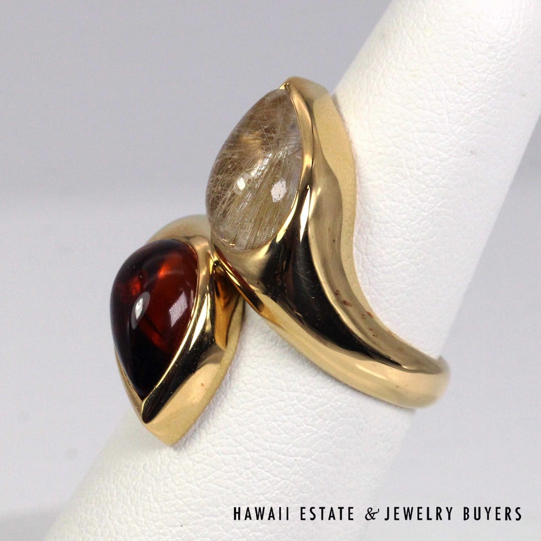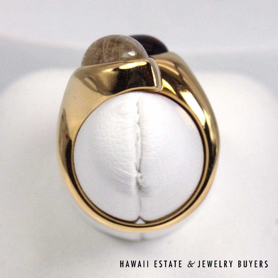 BVLGARI 18.2g 20KYG 5ctw RUTILATED QTZ & MADEIRA CIT VINTAGE MOI ET TOI RING SIZE 7.25(3109-02)