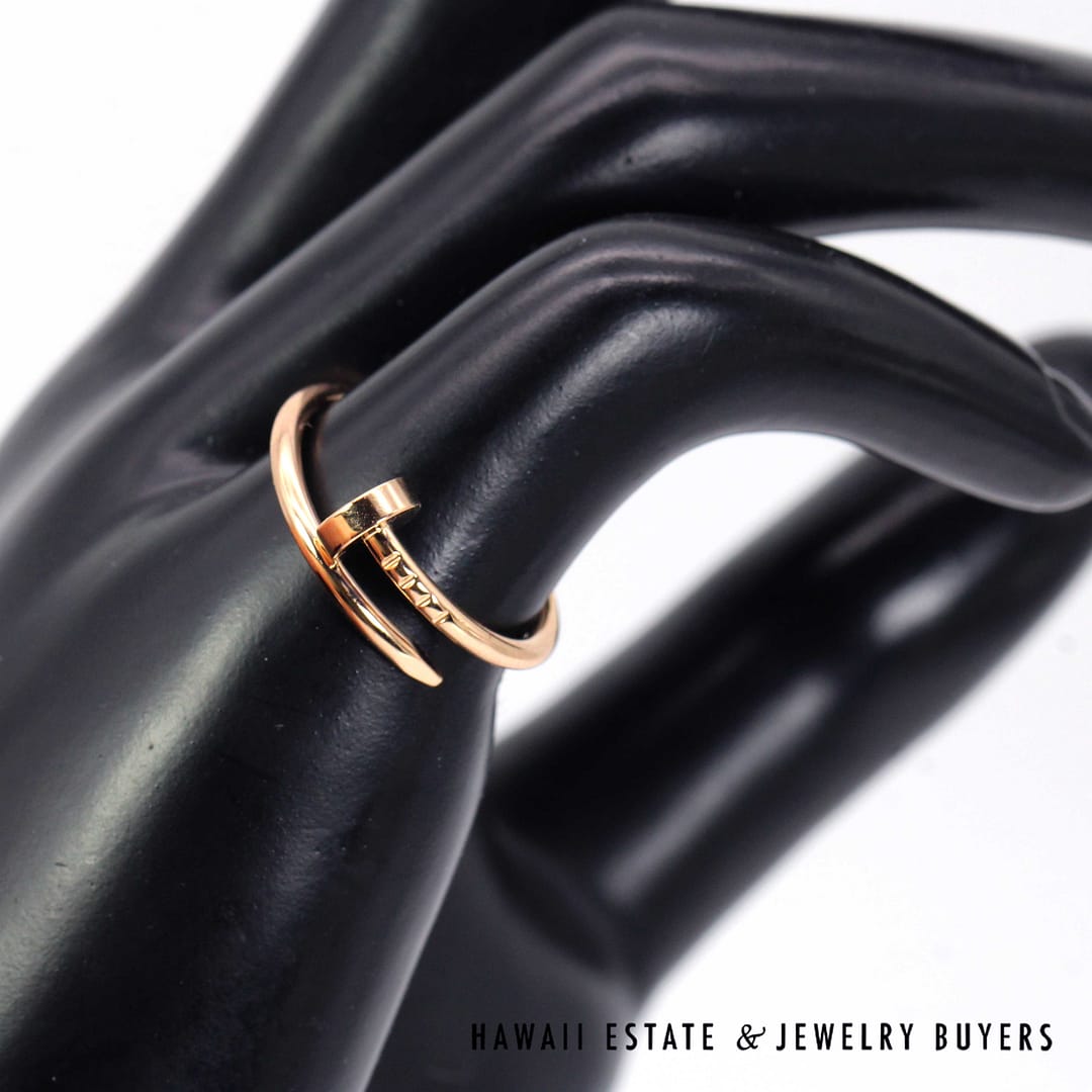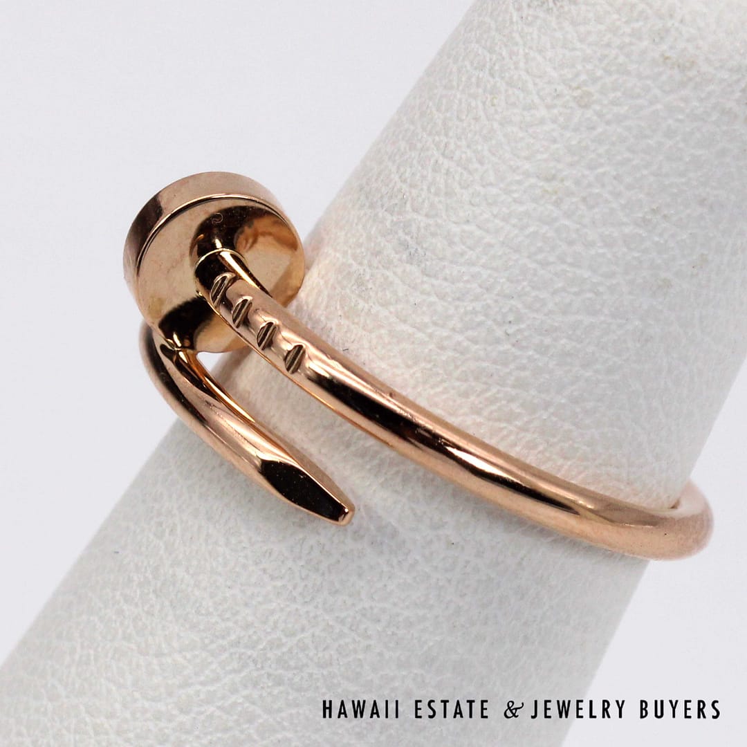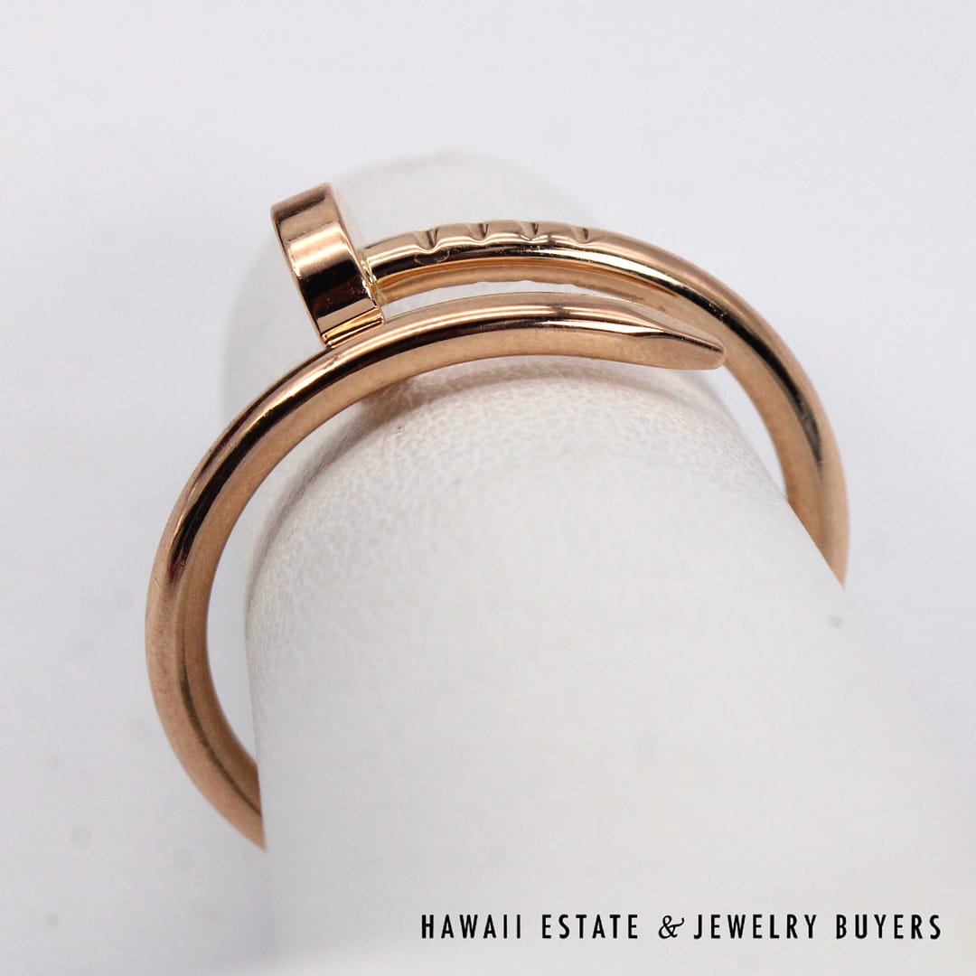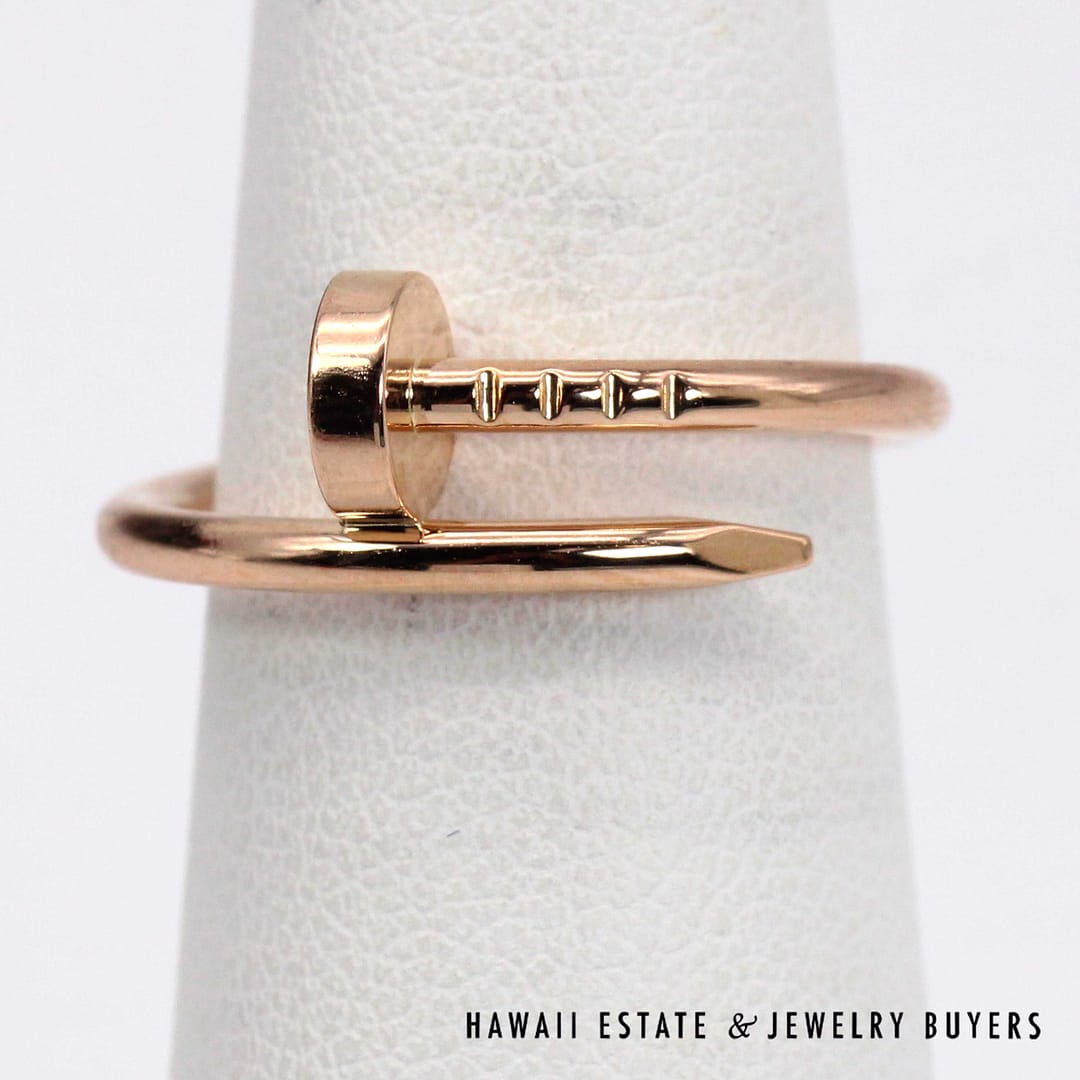 DescriptionAuthentic Cartier Just Un Clou ring crafted in 18K rose gold, featuring the iconic nail-inspired design with sleek, modern elegance.CARTIER JUSTE UN CLOU 18KRG RING SIZE 52 WITH BOX & DOCS (3106-04)$1,200.00Out of stockSKU: 3106-04Categories: Pre-owned Designer Jewelry, Pre-owned Gold jewelryRelated StylesTIFFANY & CO. NATURAL GIA BLUE SAPPHIRE & .77CTW DIAMOND PLATINUM RING W/ PAPERS SIZE 6$10,000.00MIKIMOTO AAA AKOYA PEARL 4-6MM WHITE 14K YELLOW GOLD FLOWER BROOCH PIN & EARRINGS SET$2,000.00Roberto Coin Cento Diamond Ring$3,800.00MIKIMOTO 2.23CTW DIAMOND & PEARL 14K WHITE GOLD ELEGANT SWIRL BROOCH PIN W/ GEMOLOGIST APPRAISAL$5,600.00