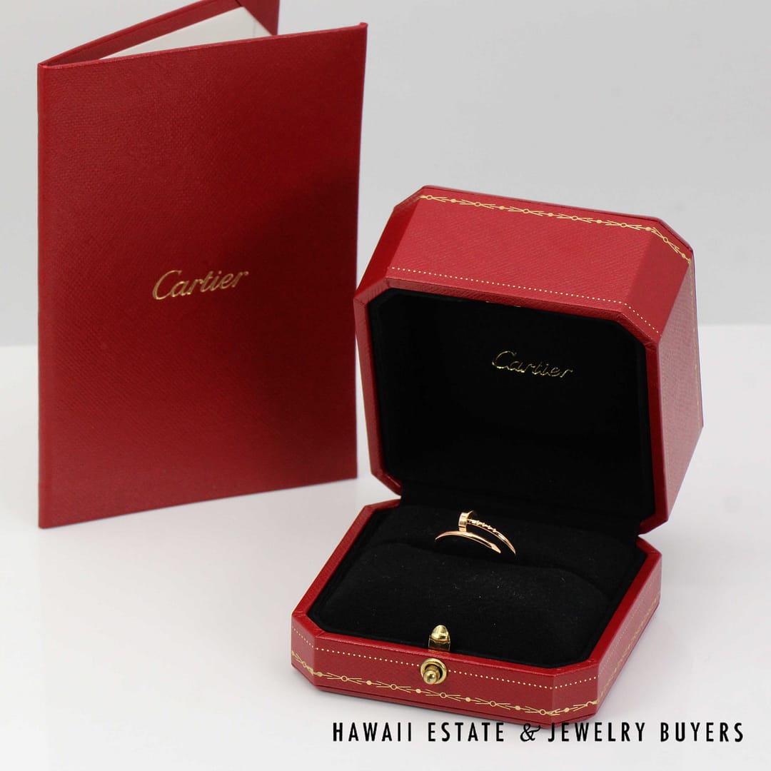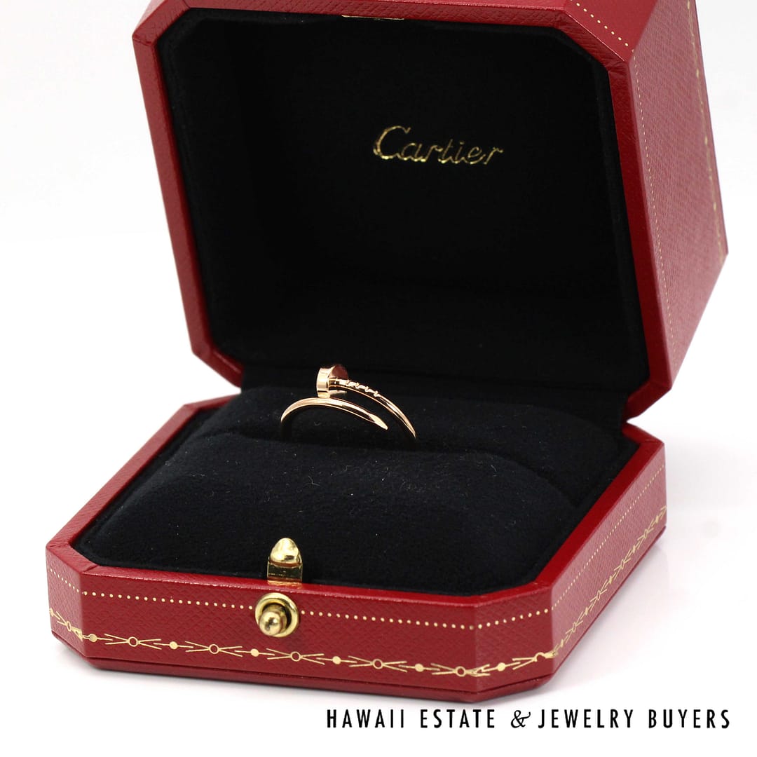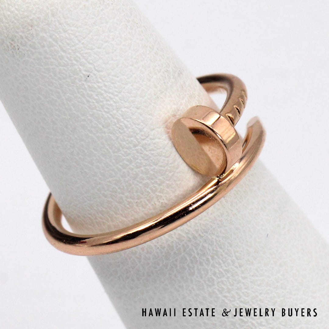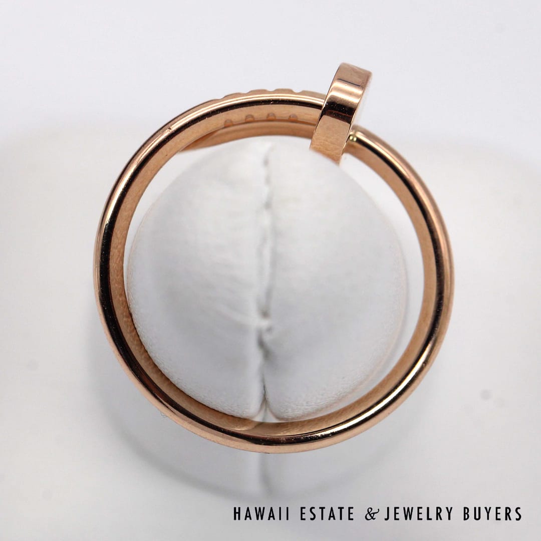 DescriptionAuthentic Cartier Just Un Clou ring crafted in 18K rose gold, featuring the iconic nail-inspired design with sleek, modern elegance.CARTIER JUSTE UN CLOU 18KRG RING SIZE 52 WITH BOX & DOCS (3106-04)$1,200.00Out of stockSKU: 3106-04Categories: Pre-owned Designer Jewelry, Pre-owned Gold jewelryRelated StylesTIFFANY & CO. NATURAL GIA BLUE SAPPHIRE & .77CTW DIAMOND PLATINUM RING W/ PAPERS SIZE 6$10,000.00MIKIMOTO AAA AKOYA PEARL 4-6MM WHITE 14K YELLOW GOLD FLOWER BROOCH PIN & EARRINGS SET$2,000.00Roberto Coin Cento Diamond Ring$3,800.00MIKIMOTO 2.23CTW DIAMOND & PEARL 14K WHITE GOLD ELEGANT SWIRL BROOCH PIN W/ GEMOLOGIST APPRAISAL$5,600.00
