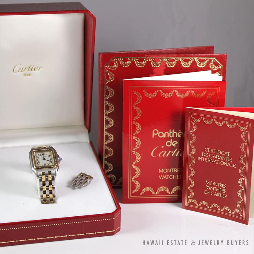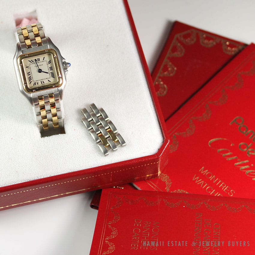 DescriptionComes with certificate, receipt, extra link, box and books as shown in photos!Recently serviced by Cartier $1,950.00Out of stockSKU: jm100-01Category: Pre-owned Luxury WatchesTag: CARTIERRelated StylesLADIES BLANCPAIN VILLERET 28MM 18K ALLIGATOR MECHANICAL SWISS WATCH w/ APPRAISAL$3,800.001930’s ANTIQUE ART DECO DIAMOND BAGUETTE WRIST WATCH WORKING CONDITION$3,692.00RARE ROLEX SUBMARINER 1680 BLACK NIPPLE DIAL 18K YELLOW GOLD BRACELET WATCH$79,900.00ROLEX RARE VINTAGE BUBBLE BACK 14K YELLOW GOLD OYSTER PERPETUAL WATCH 5015 1945$11,000.00