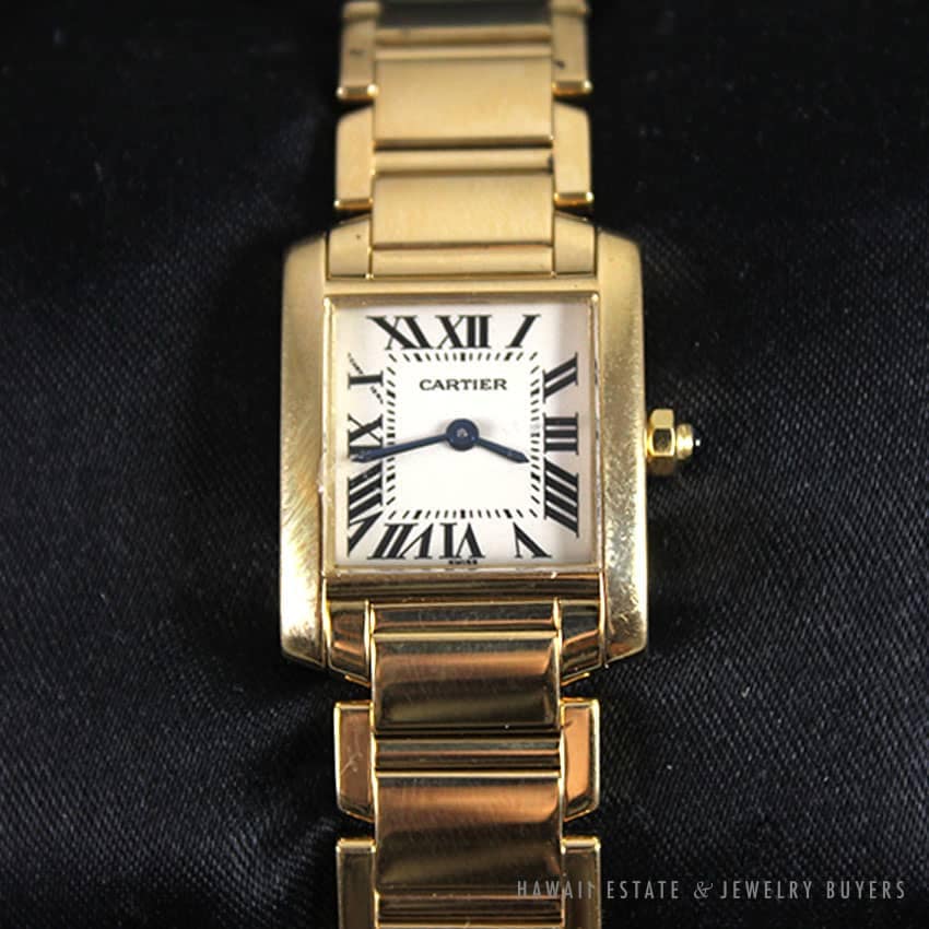 DescriptionMETAL: 18K YELLOW GOLDComes with 1 additional link.SKU: 1928-01 $19,600.001 in stockCARTIER TANK FRANCAISE SMALL 18K YELLOW GOLD LADIES WATCH quantityAdd to cartMake OfferSKU: 1928-01Category: Pre-owned Luxury WatchesTags: CARTIER, DESIGNER, DIAMOND, ladies watch, watchRelated StylesRolex DateJust Salmon Mid Size Ladies$4,900.00ROLEX GMT-MASTER 18K YELLOW GOLD SERTI DIAMOND RUBY 16758 WATCH WITH BOX & PAPER$89,900.00LADIES BLANCPAIN VILLERET 28MM 18K ALLIGATOR MECHANICAL SWISS WATCH w/ APPRAISAL$3,800.00VINTAGE BAUME & MERCIER DIAMOND BEZEL 18K YELLOW GOLD ROUND FACE BLACK LEATHER STRAP WATCH$2,000.00