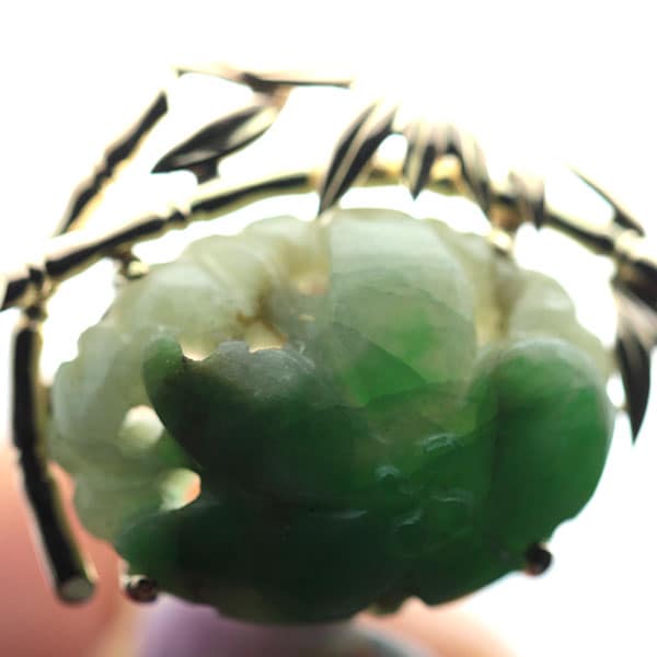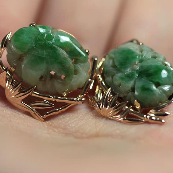 DescriptionMetal: 18K Yellow GoldStone: Jade$1,500.00Carved Pierced Bamboo Motif Jade 18K Yellow Gold Cufflinks quantityAdd to cartBuy withMake OfferSKU: 0706-01Category: Pre-owned Vintage & Jade JewelryRelated StylesCertified Twisted White Nephrite Jade Bangle$6,000.001.65ct Natural Pink Sapphire and Diamond Ring$6,500.00Natural GIA Certified Ruby Diamond Ring$6,800.0022.8g 18KWG TYPE A IMPERIAL JADE BUDDAH HAND CARVING w/2.50ctw DIAMOND PENDANT MEASURES 58x28mm (1395-01)$13,900.00