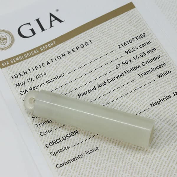 Certified Nephrite Jade White Hollow Cylinder