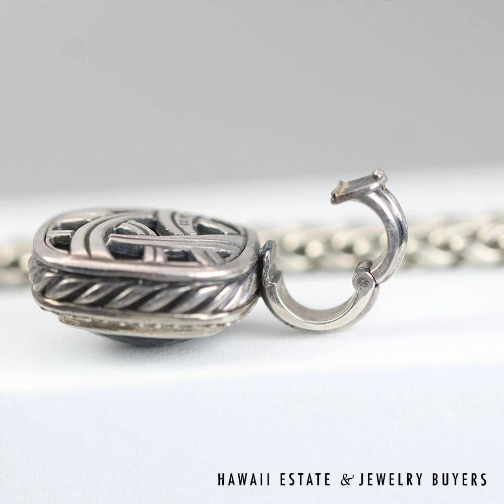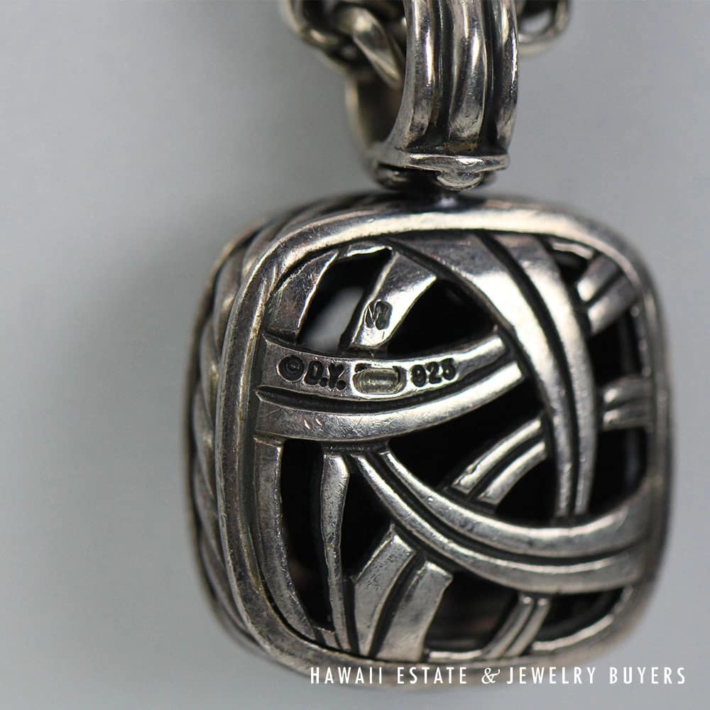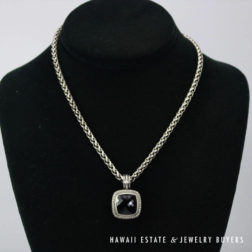 David Yurman Black Onyx Chessboard & Diamond Albion Sterling Silver Pendant & Necklace. Functioning bail on the pendant.