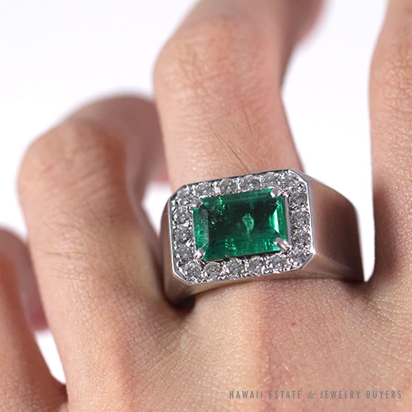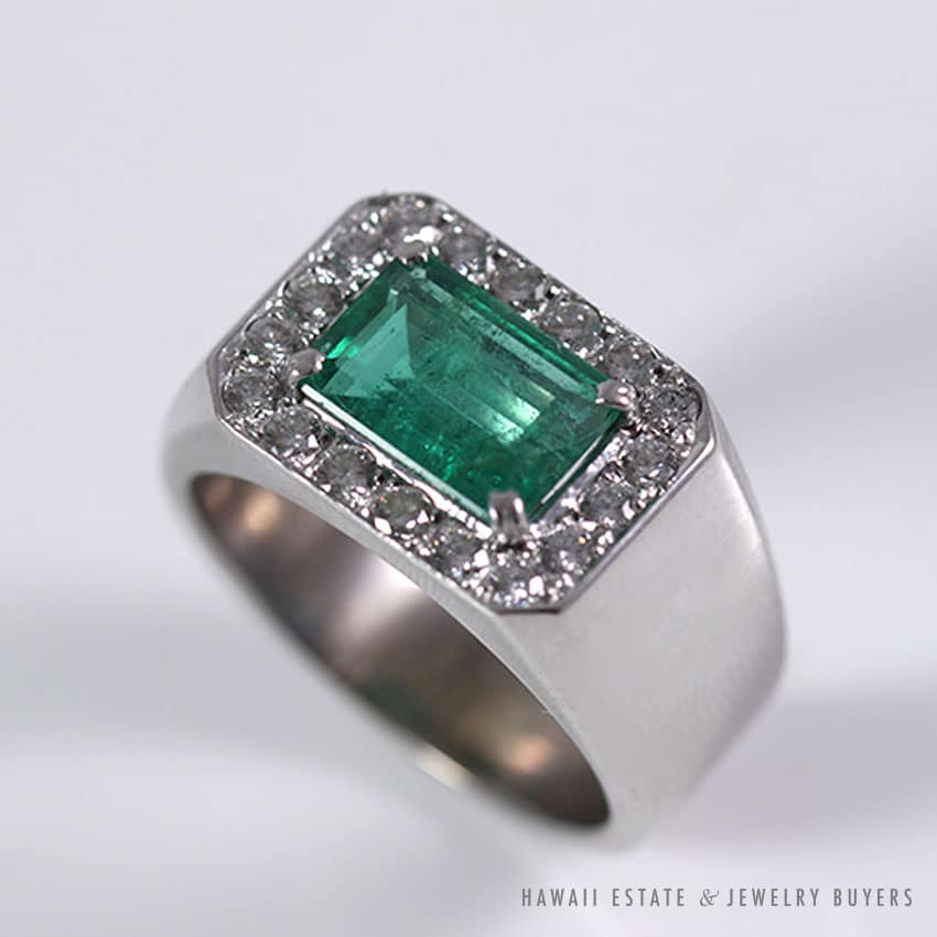 Emerald & Diamond 18K White Gold Men’s Ring