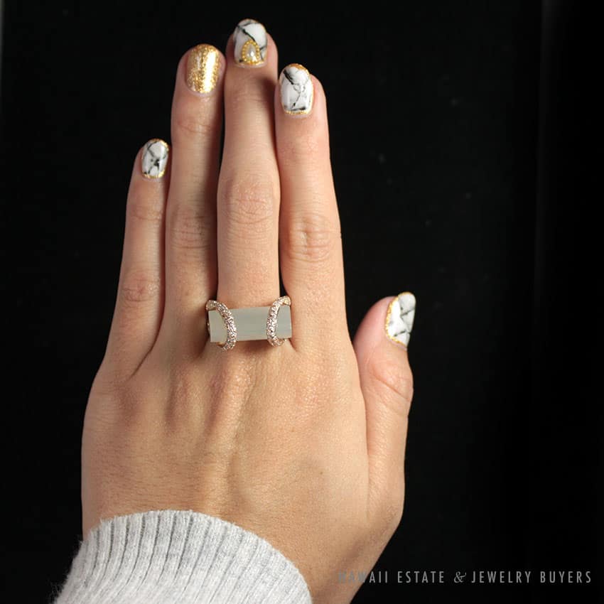 DescriptionMetal: 18K Rose GoldSize: 8SKU: 1676-05SOLD$3,500.00Out of stockSKU: 1676-05Category: Pre-owned Vintage JewelryRelated StylesNatural Lavender Cabochon Pendant$2,300.00Certified Nephrite Jade White Hollow Cylinder$3,700.00Natural Grade A White Jade Archer Ring$3,800.00Vintage Fire Opal & Diamond 18K Ring$7,000.00