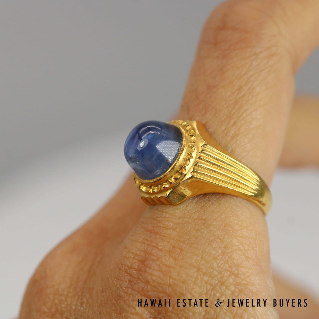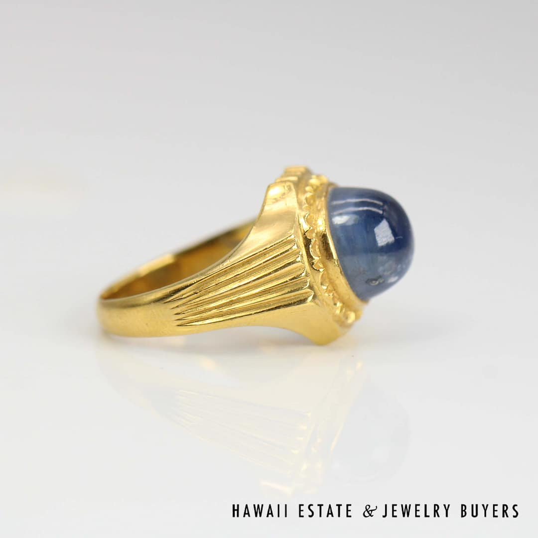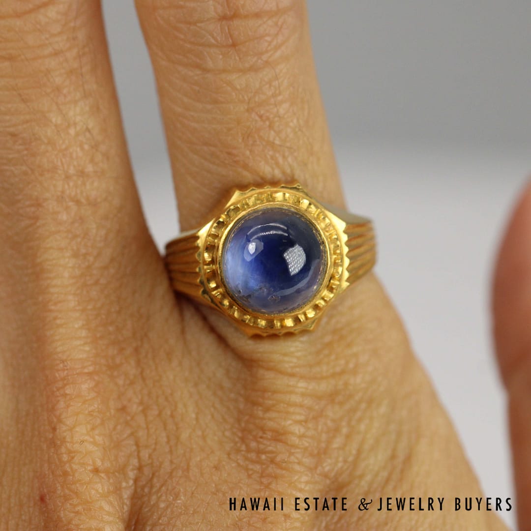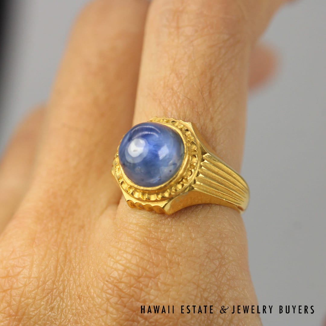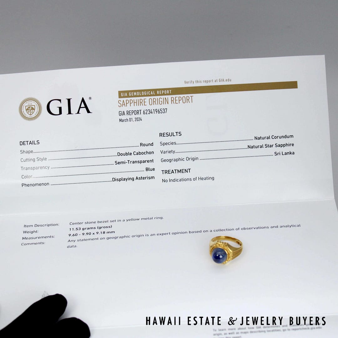 GIA 11.5g 22KYG 10.50ct ROUND STAR SAPPHIRE CAB RING SIZE 7.5 (3021-18)