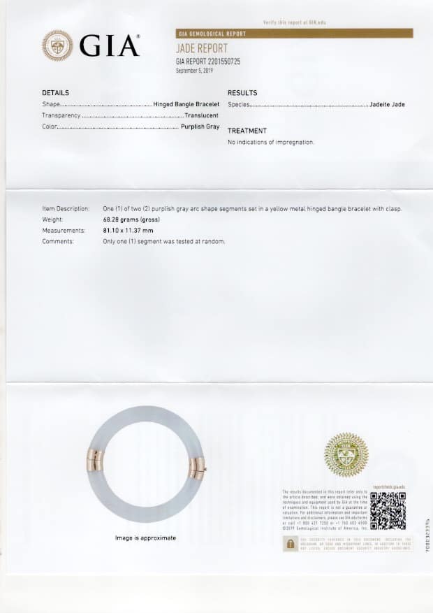 DescriptionGIA 68.2g 14KYG PURPLISH GRAY HINGED BANGLE BRACELET SIZE 7.25$12,000.001 in stockGIA 68.2g 14KYG PURPLISH GRAY HINGED BANGLE BRACELET SIZE 7.25 quantityAdd to cartBuy withMake OfferSKU: 082319-01Categories: Jade Jewelry, Pre-owned Jade JewelryTags: 14k yellow gold, bracelet, GIA JADE, jadeRelated StylesMing’s Hawaii Pearl & Multi-Color Jade Cluster 14K Ring$2,650.00Ming’s Hawaii Jade Green & Pearl Cluster 14K Yellow Gold Ring Earrings Brooch Set$3,800.00Ming’s Green Jade Cabochon Flower Border Ring$1,800.00Ming’s Hawaii Jade Pale Green/White and Brown Splash 14K Yellow Gold Bangle Bracelet$3,500.00