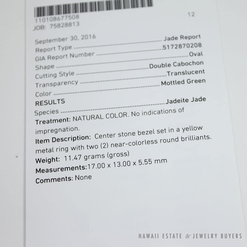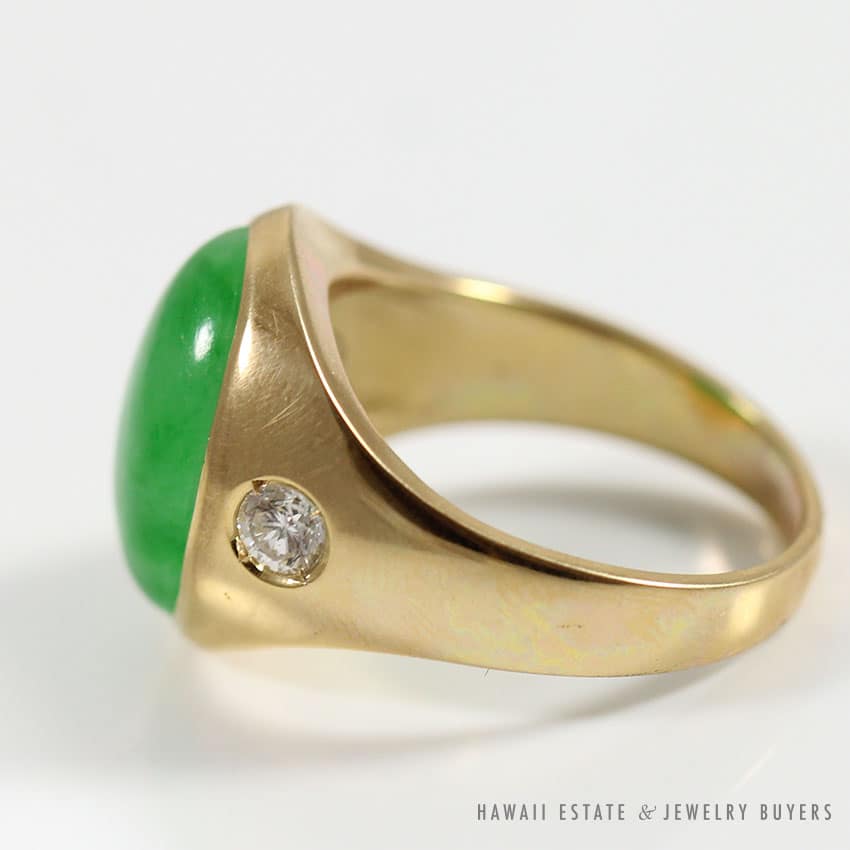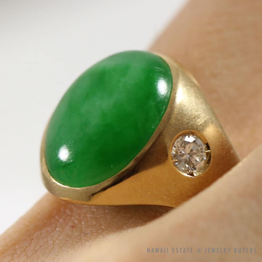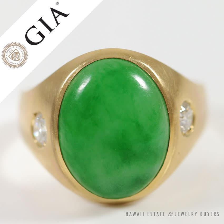GIA CERTIFIED NATURAL GREEN JADEITE JADE & DIAMONDS HEAVY CABOCHON MEN’S RING
